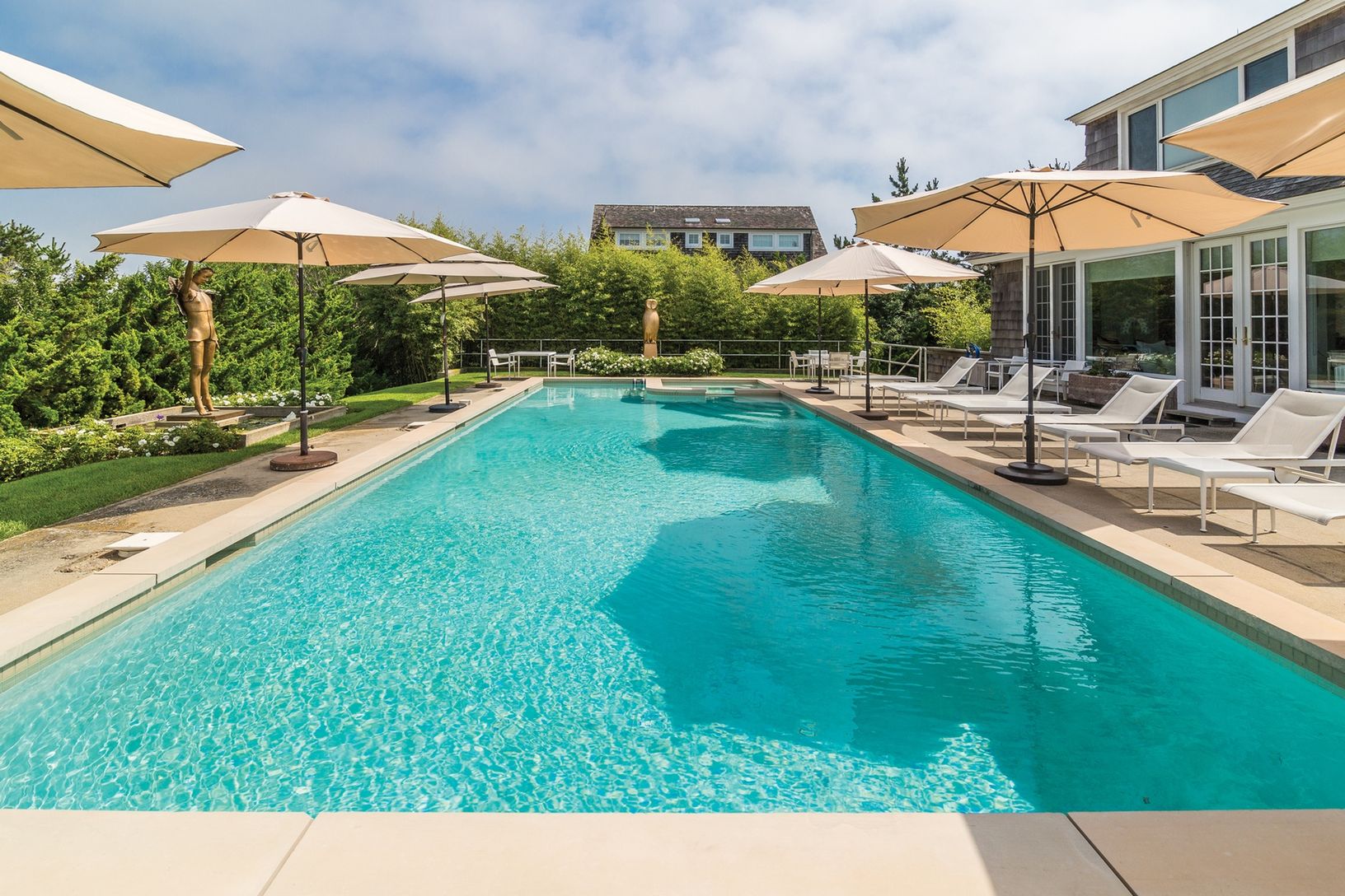 Spend the last two weeks of summer on the ocean. Live among an abundance of orchids, art and ocean views. Chic and bright six bedrooms and six and one half baths beach house. Stunning sun room is facing a 40' X 18' pool. There are four en suit bedrooms with four bathrooms and a sitting area on the lower level. Main level consists of a living room, dining room, kitchen, sun room and en suit guest bedroom. Top floor master is on the ocean with a