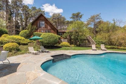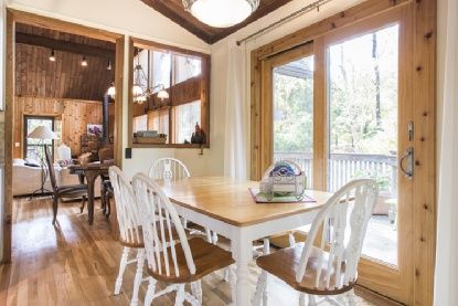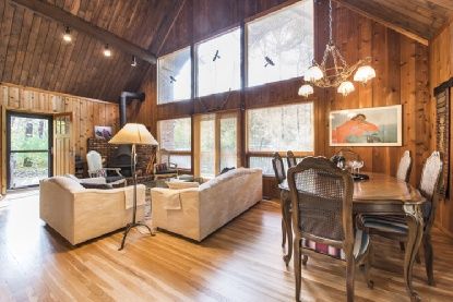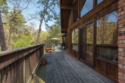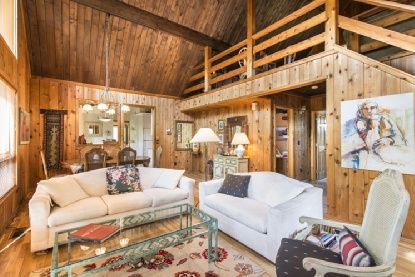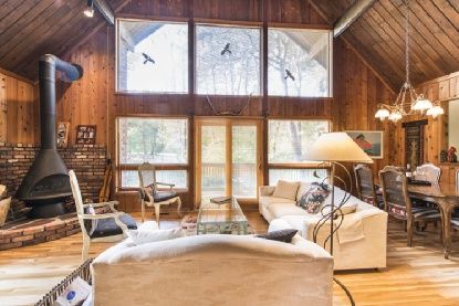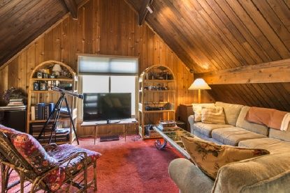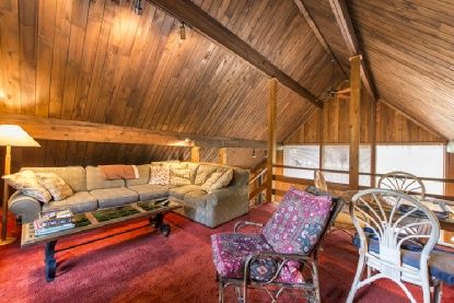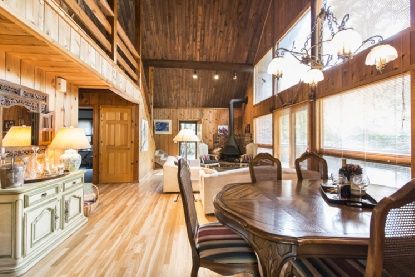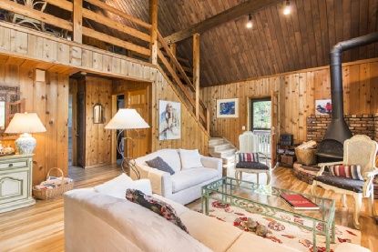Built to last with incredible craftsmanship throughout, this beautiful chalet-style home has cathedral ceilings and open plan first floor with a wood-burning stove. The first floor includes an updated eat-in kitchen, en-suite master bedroom with large picture window and two guest bedrooms with a renovated Jack and Jill bath. Three sets of sliding glass doors on the first floor lead to a beautiful wraparound deck from the master, kitchen and li