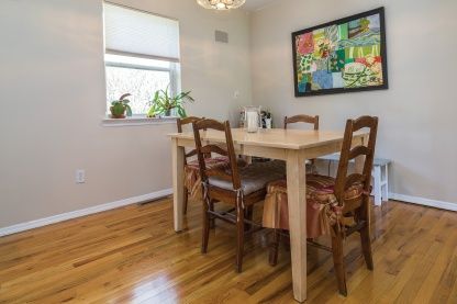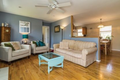 This turnkey, beautifully maintained home in a convenient location is a rare offering in this price range. The charming 1,152+/- sq. ft. cottage has three bedrooms, a full bath and a powder room, and open plan living areas including a living room with fireplace and glass doors to a deck, and a spotless eat-in kitchen and dining area. The bedrooms are bright and comfortable. Beautiful hardwood floors throughout. Outdoors you will enjoy the big
