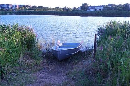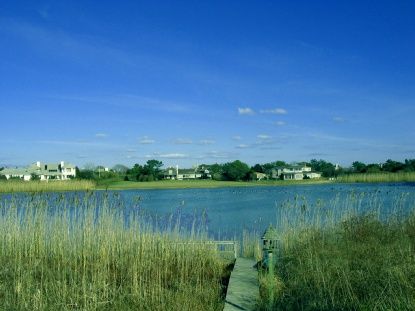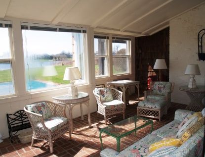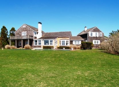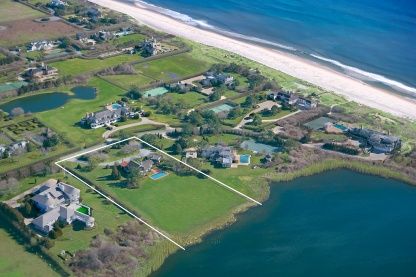 Private and peaceful estate on 2.3 acres with 227 ft. directly on Wickapogue (Duck) Pond. Classic post-and-beam home with open living spaces, butler's and main kitchens, sun porch and patio. Two master suites, one on each floor, with fireplaces, private baths, and private terraces. Four guest bedrooms. Separate staff entry and second-story quarters with two bedrooms and bath. Heated in-ground pool and room for a tennis court. Private ocean acc