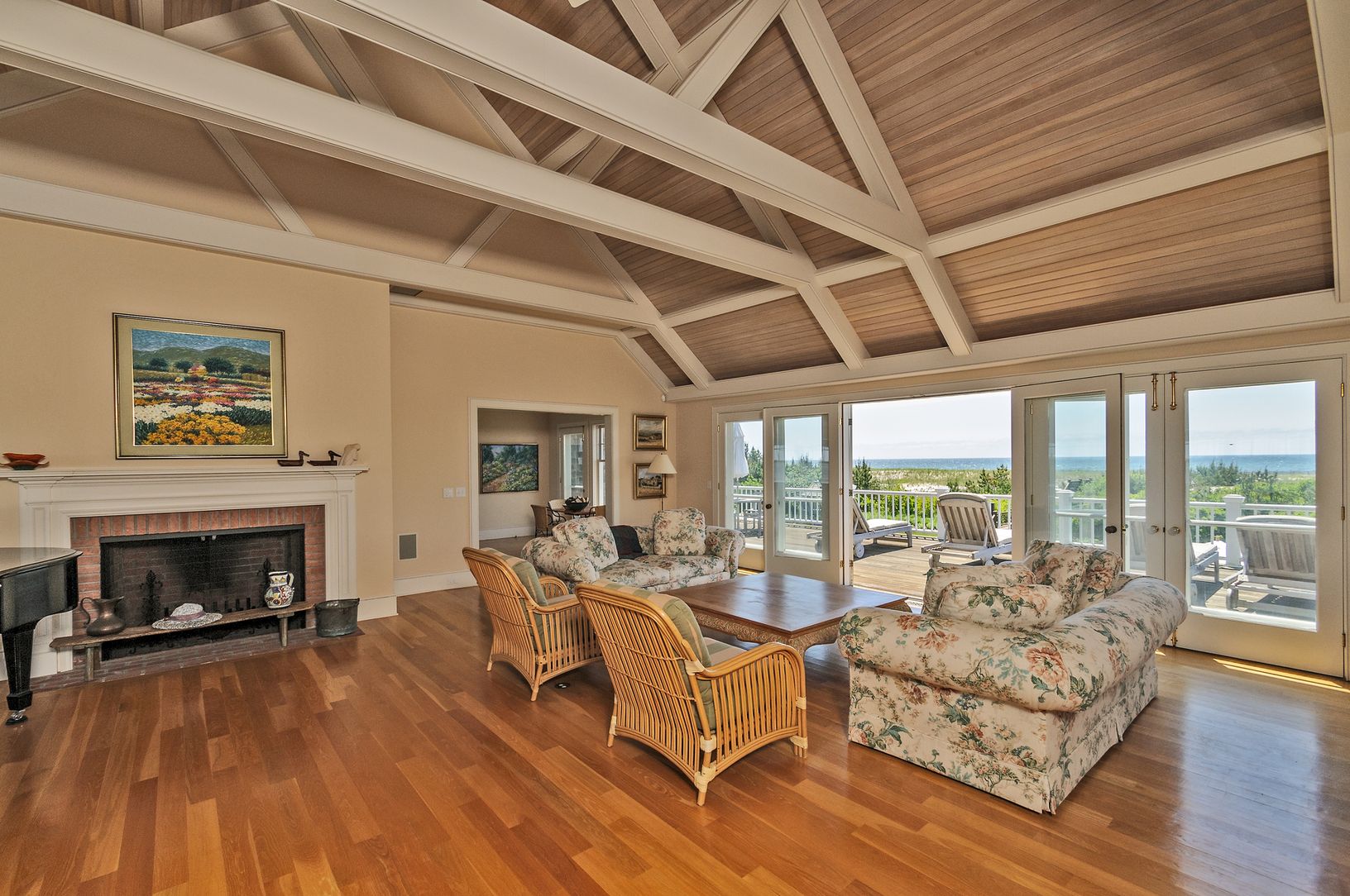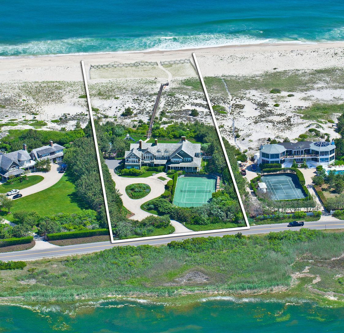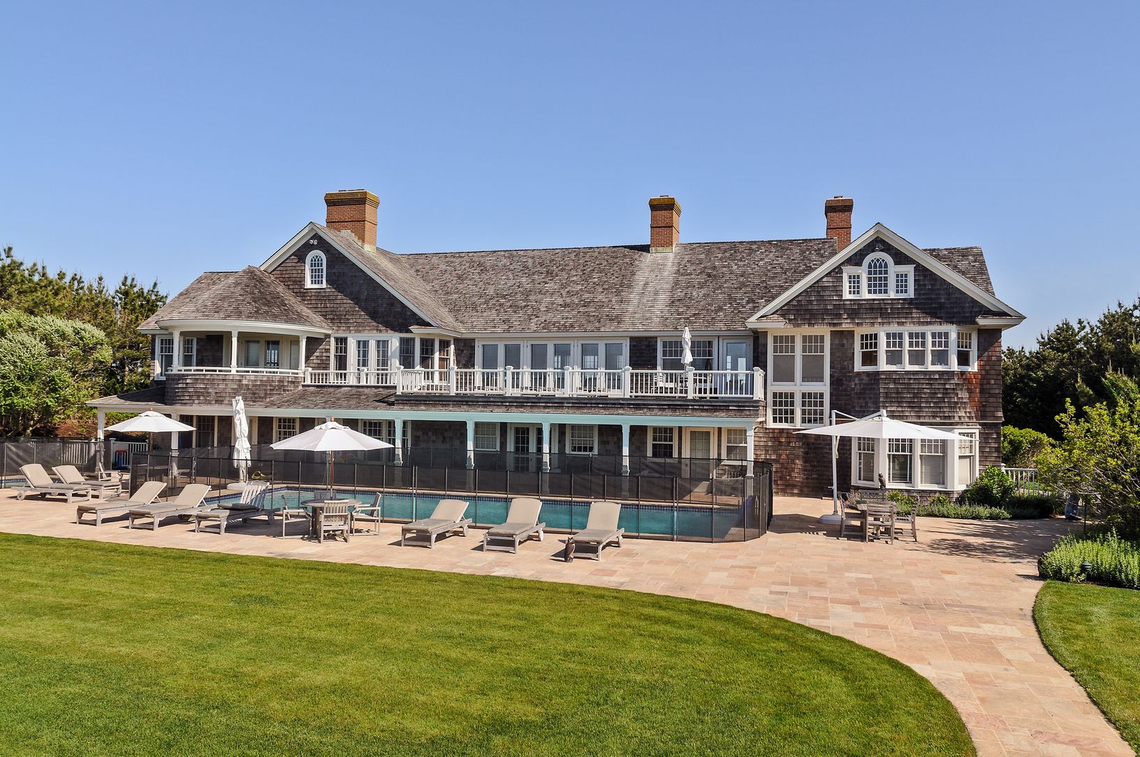 Bob Langman-built, this "modern traditional", shingle style Hamptons home with post-modern elements is squarely situated on 3.3 oceanfront acres on Southampton's most desired Meadow Lane. Built in 1989 and upgraded throughout, the residence retains interior architectural elements such as double-height rooms with exposed, natural wood beams and extensive use of wainscoting and bead board. The exterior is marked by its cedar shingles, peaked roo