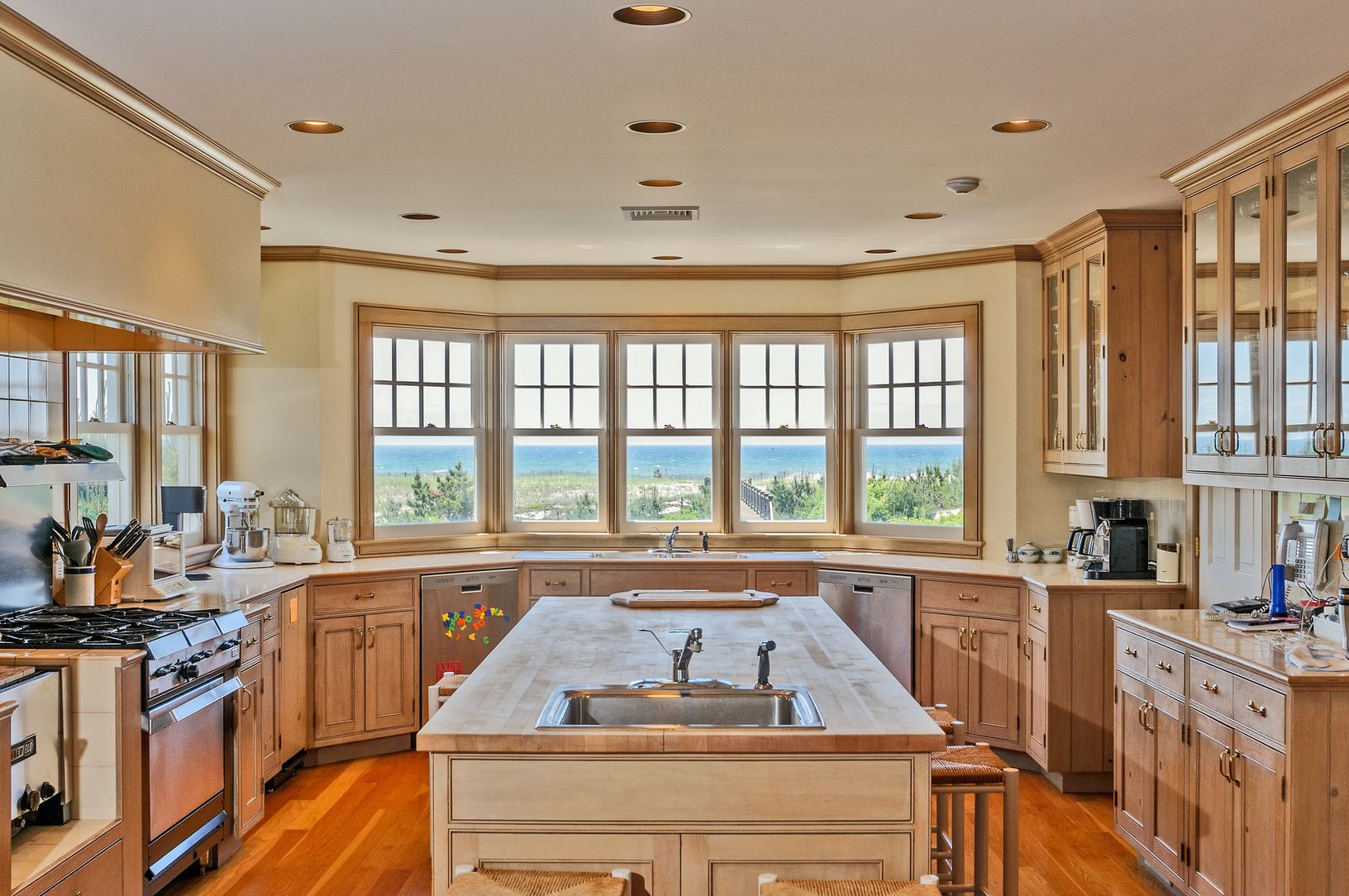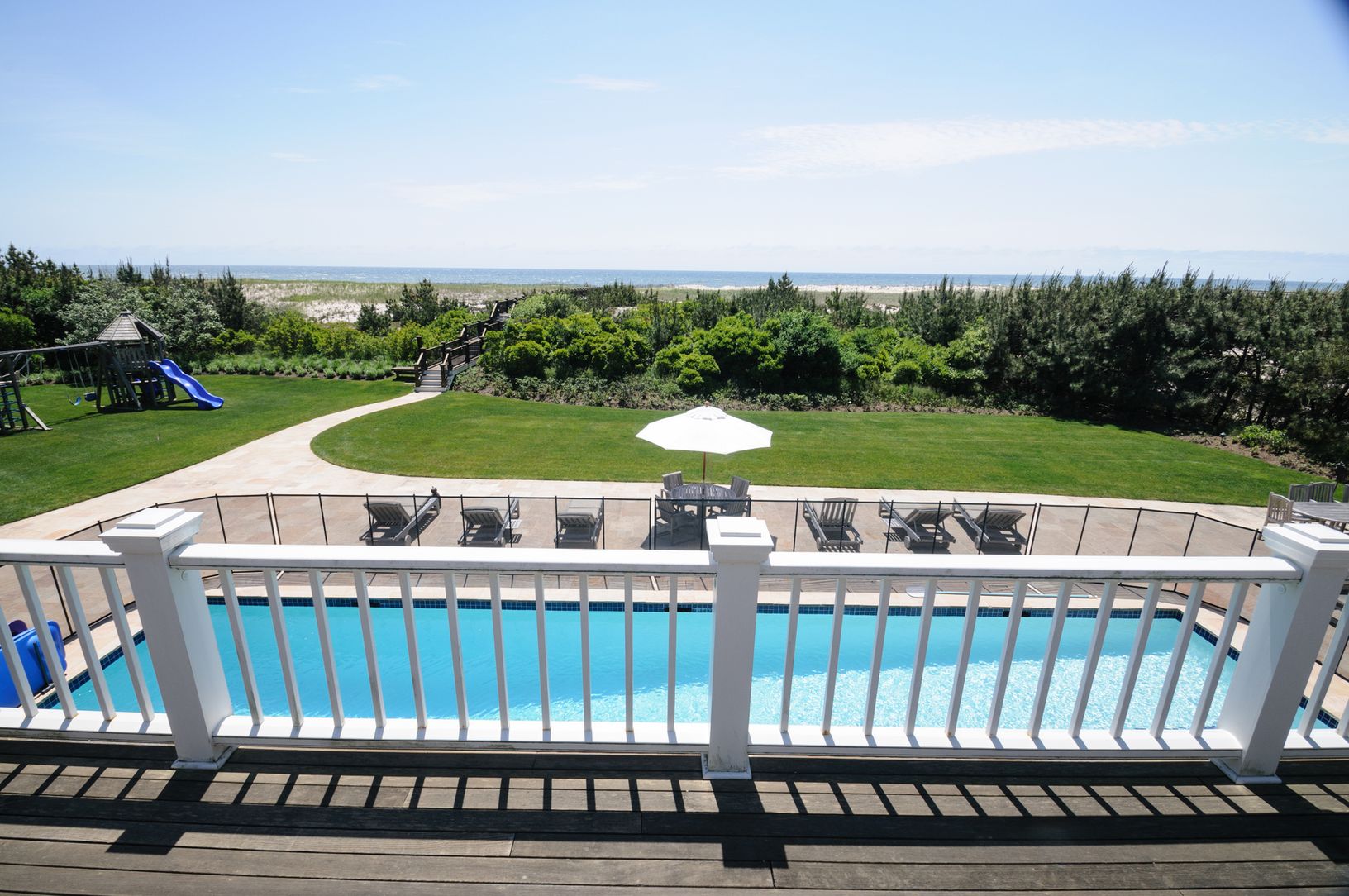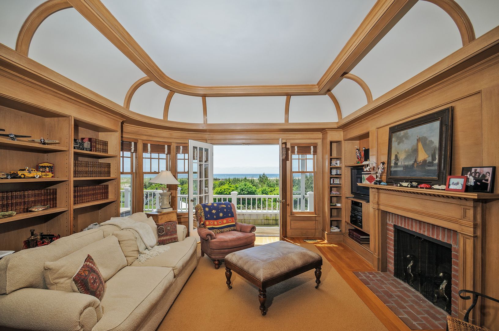 Bob Langman-built, this "modern traditional", shingle style Hamptons home with post-modern elements is squarely situated on 3.3 oceanfront acres on Southampton's most desired Meadow Lane. Built in 1989 and upgraded throughout, the residence retains interior architectural elements such as double-height rooms with exposed, natural wood beams and extensive use of wainscoting and bead board. The exterior is marked by its cedar shingles, peaked roo