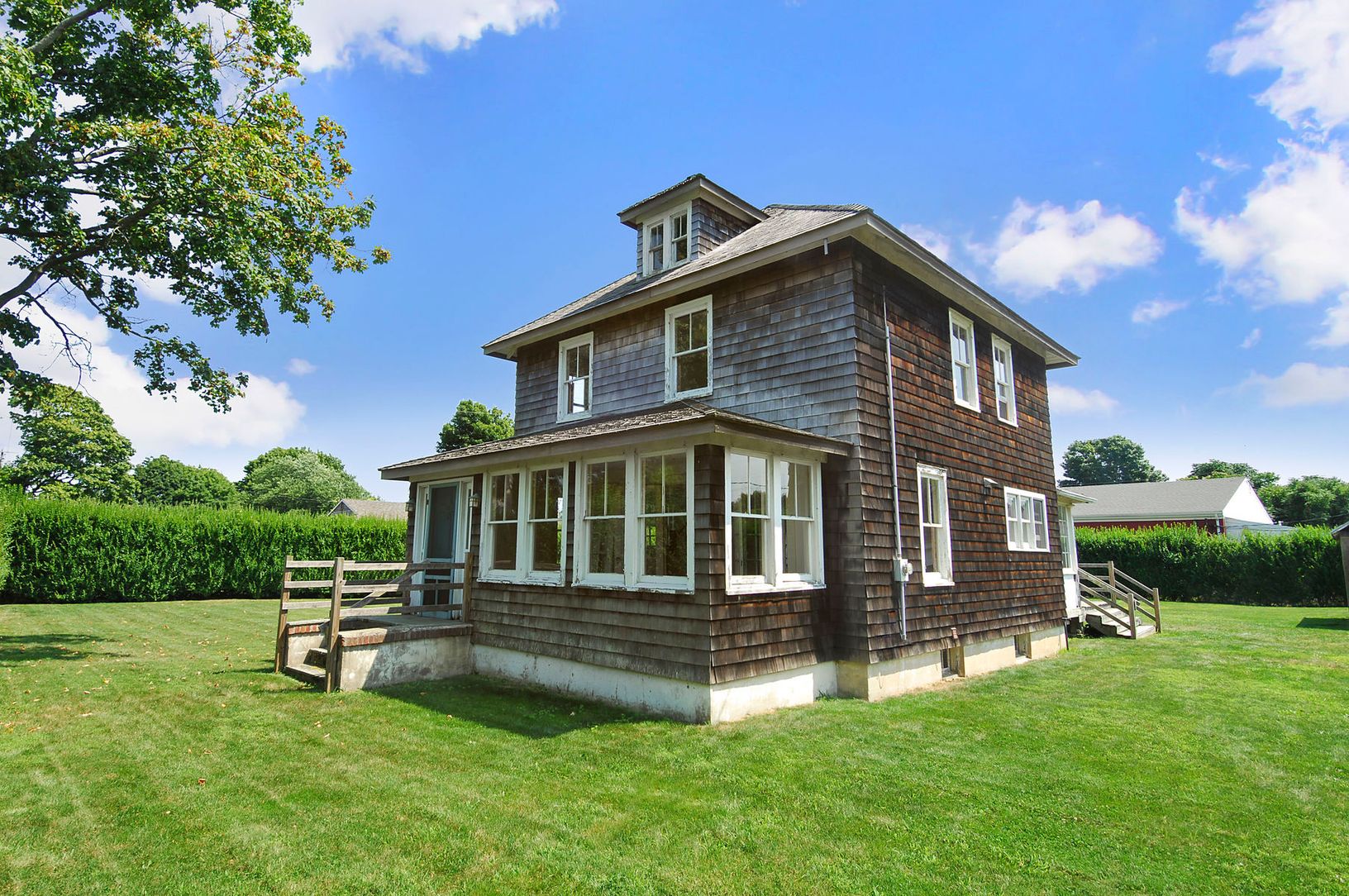 Original, airy 3 bedroom, 2 bath home on a beautifully private and fully privet-enclosed 0.4 acres with detached 1-car garage. This authentic Southampton Village home may be expanded or a full set of Bruce Nagel Architect plans are available for the buyer with an eye to rebuild. Room for a pool. Excellent location and extraordinary opportunity in Southampton Village.