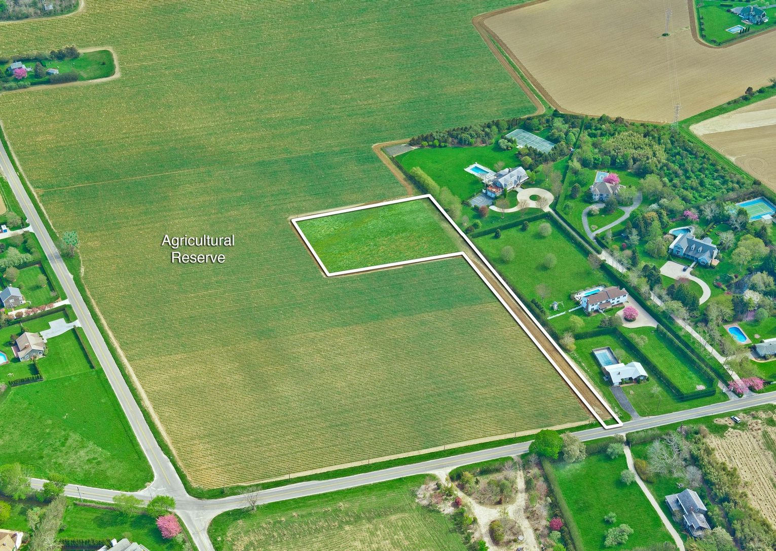 Unique opportunity to build your dream home on 1.5+/- acres in an exceptional Southampton location. Experience picture perfect sunrises and sunsets illuminating the 49+/- acres of agricultural reserve that border this flag lot. Conveniently located close to restaurants and boutiques in Southampton Village and the Hampton's best ocean beaches.