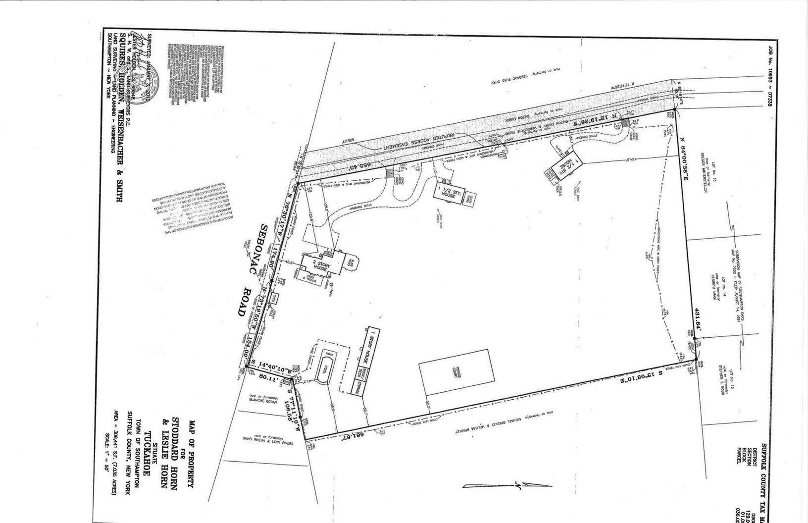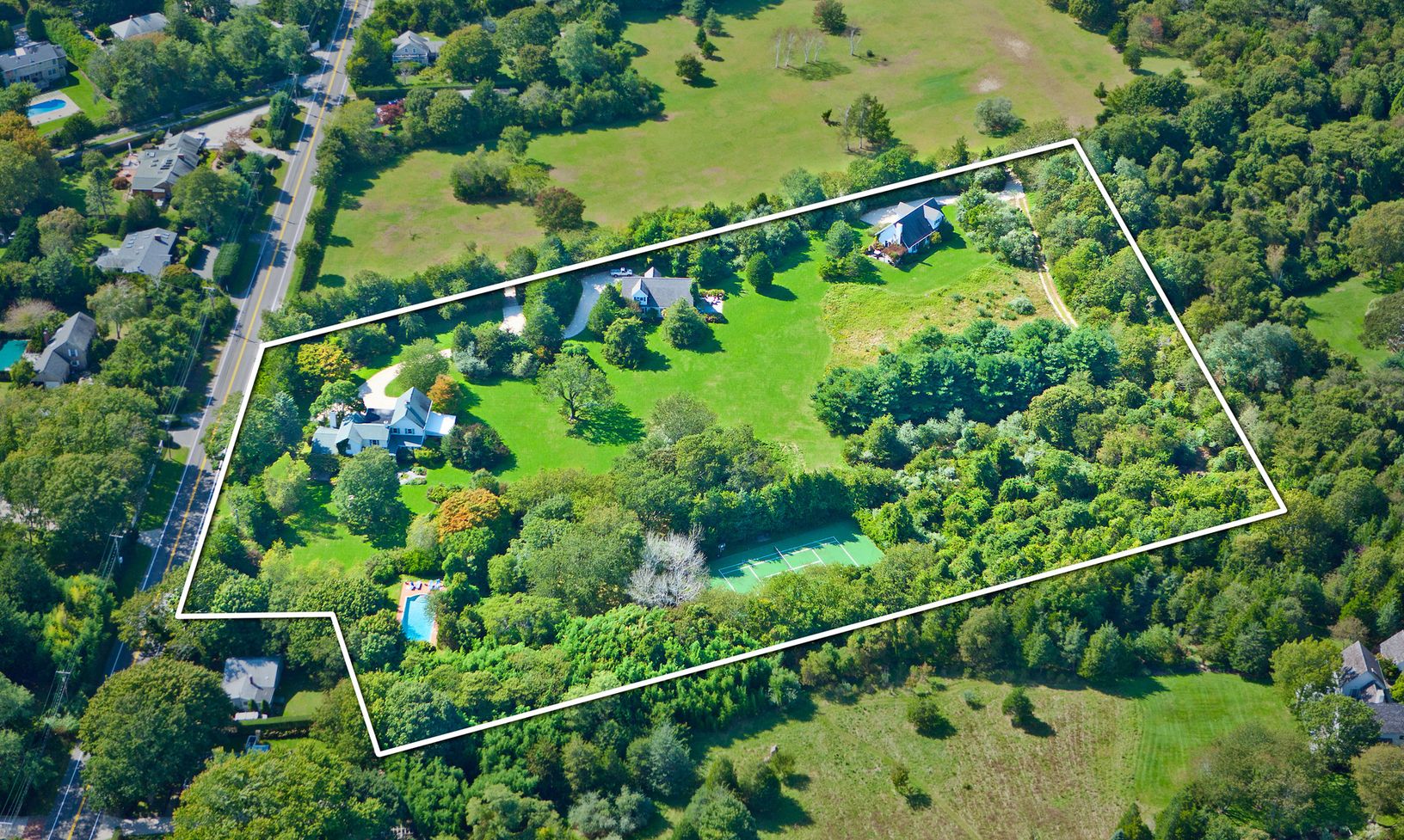 This unique property was created to form a perfect and private compound on 7 beautiful acres surrounded by four historic golf clubs. The beauty of Bull Head and Peconic Bay beckons nearby. The compound includes 3 houses with a total of 12 bedrooms and 9 baths. Principal residence is a charming, totally renovated farmhouse that includes a Master Bedroom with 2 baths, a downstairs Junior Master with bath plus 2 additional bedrooms for a total