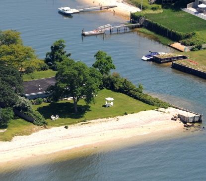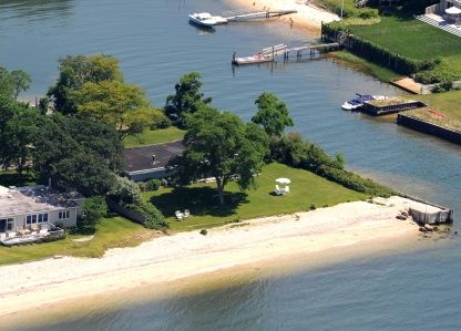 Rare peninsula on a private road in a beachfront community. Your front yard is the crisp panoramic views of The Peconic Bay. Sandy beach facing the sunsets falling into the horizon. The rear yard is a protected deep water fresh pond with more of your own sandy beaches, a private boat ramp and a significant deep water dock and the inlet is bulkheaded. 1940s Moderne with a 1992 update and additions three bedrooms, three baths and a garage. Th