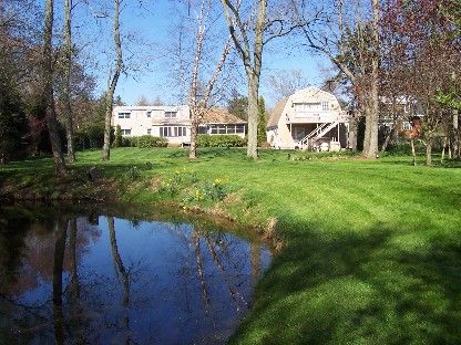 20x40 heated swimming pool on 1.37 acres of mature specimen trees and beautiful landscaping with its own fresh water pond and bubbling stream. Five bedrooms and four full baths with a formal dining and living area. Professional kitchen with a double-sided fireplace, hardwood floors, central air and a full basement. The exterior consists of a large screened sunporch for nighttime dining adjacent to another large deck area. Separate 800 sq