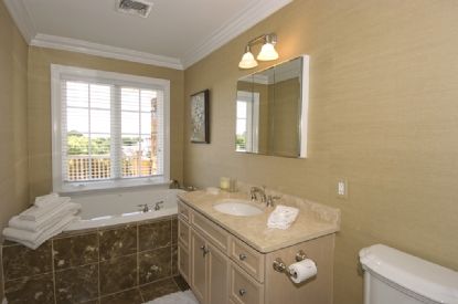Private, pristine and south of the highway! Built in 2004 and meticulously maintained, this 7 bedroom, 7.5 bath home is tucked away in a private, gated, flag lot. Just over an acre with an expansive lawn, lush landscaping and views of Shinnecock Bay. Double height ceiling foyer, 10' ceilings and custom wood work throughout. The open floor plan is great for entertaining guests or a large family and designed with a professional grade kitchen
