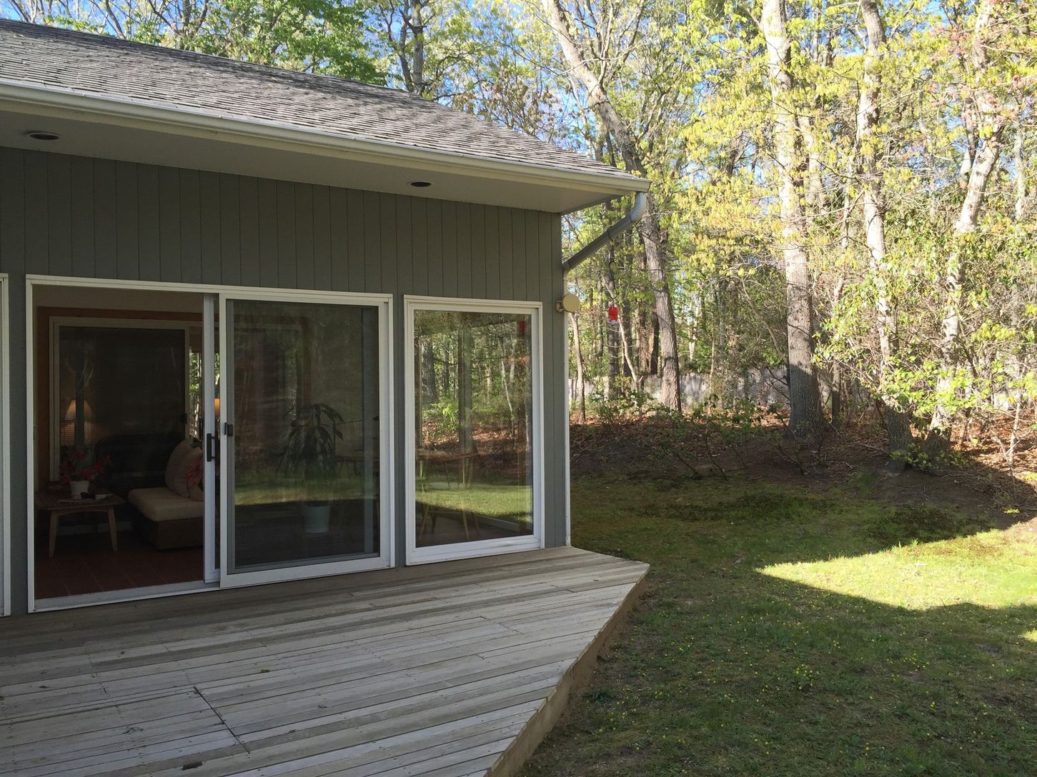 Close to Southampton Village, this one level home offers two living spaces, dining area, kitchen, master suite plus two additional bedrooms with bath. Fireplace and Central Air. Rear deck overlooking the natural landscaping of .56 Acres with room for pool. Just listed. Won't last at this price!