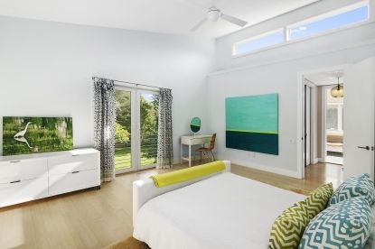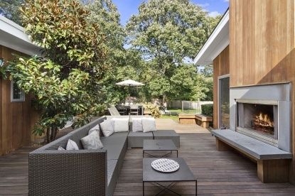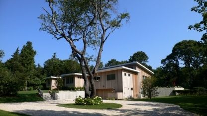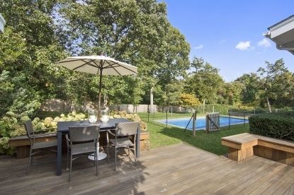 Nestled against a backdrop of natural green and nearby breathtaking Southampton Towd Point Beach, this stunning and private contemporary home is situated on a well manicured .8+/- acre flag lot. Bright and immaculate, the stylish house was completely reconstructed in 2006 and boasts large living and entertaining spaces. An expansive living room with fireplace, dining area, den and top-of-the-line Miele kitchen complement the white bamboo floor