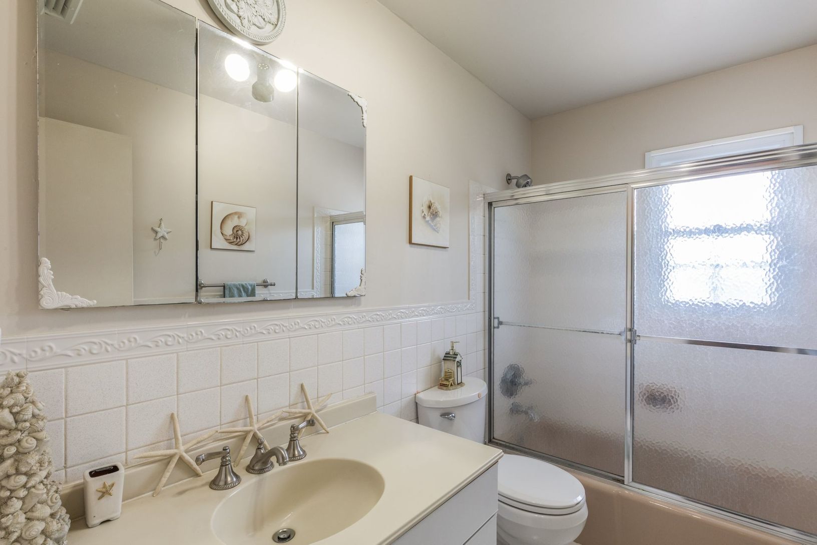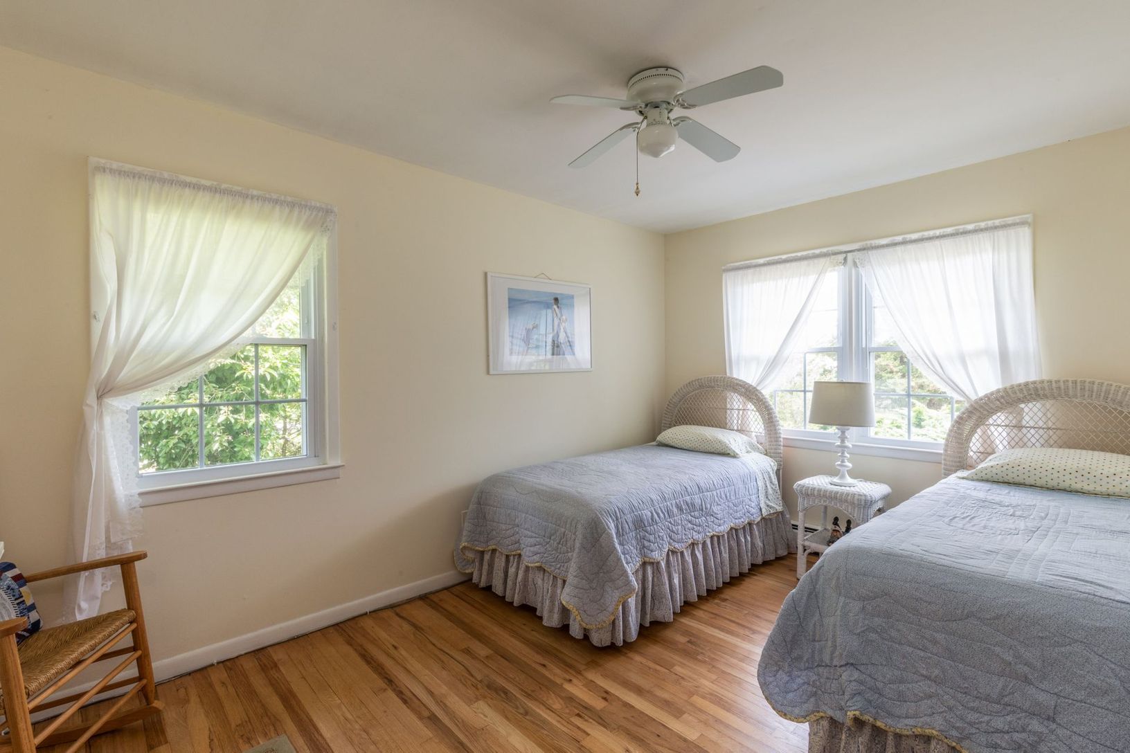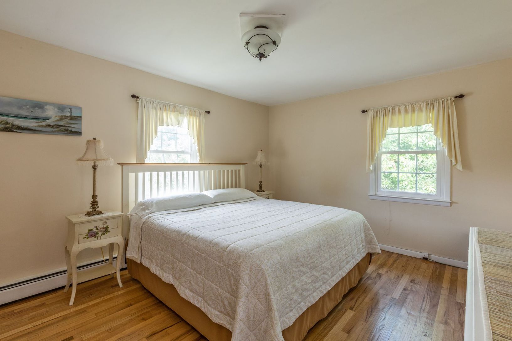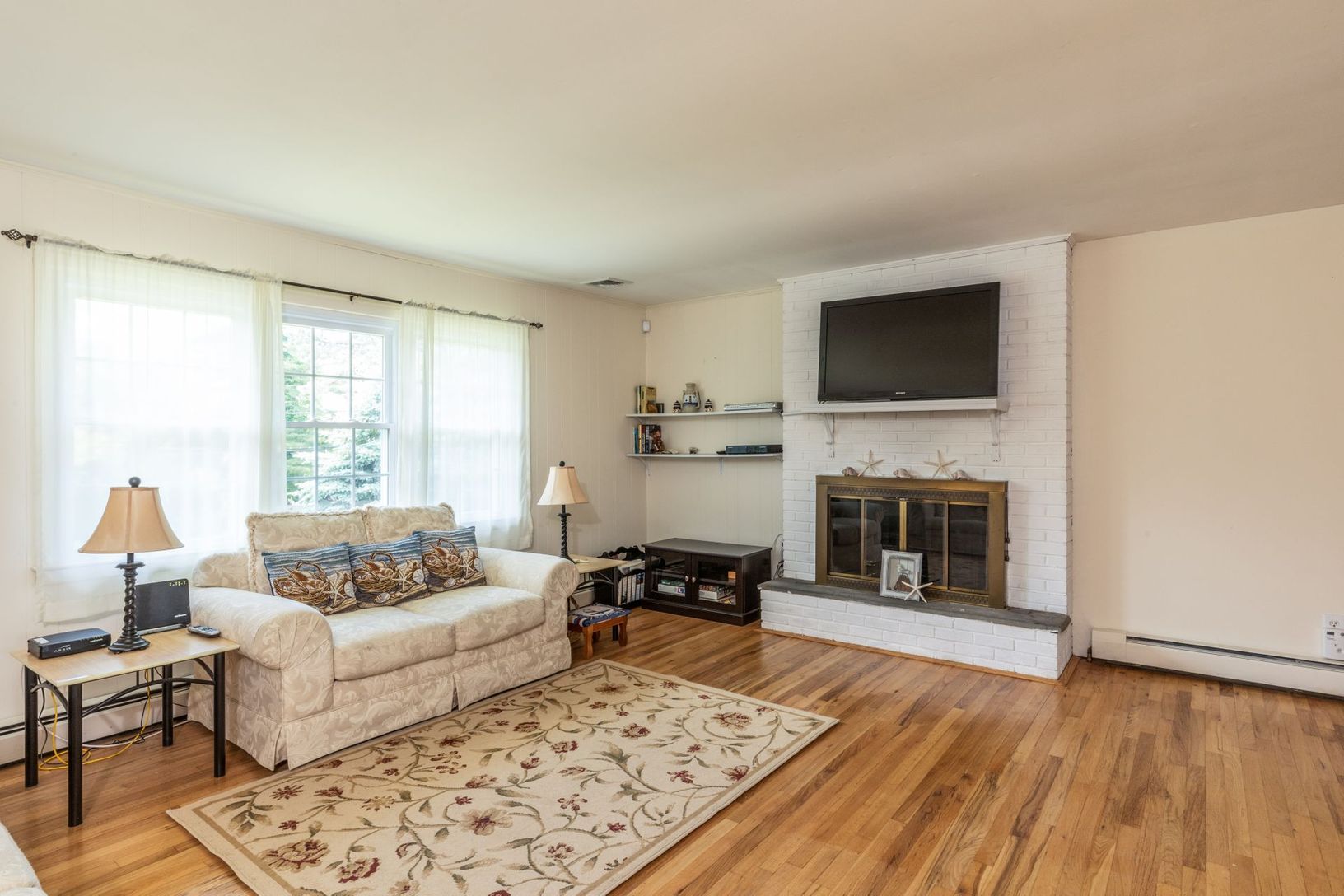 Located on a quiet cul-de-sac, enjoy a pristine three bedroom, two bath home with central air and an open floor plan featuring a living room with fireplace, dining room and renovated eat-in kitchen. A large deck with BBQ, conveniently off the kitchen, is perfect for outside dining, entertaining and gazing at wonderful summer sunsets. The deck overlooks the spacious lawn area and a sparkling heated salt water pool surrounded by a new patio. A f