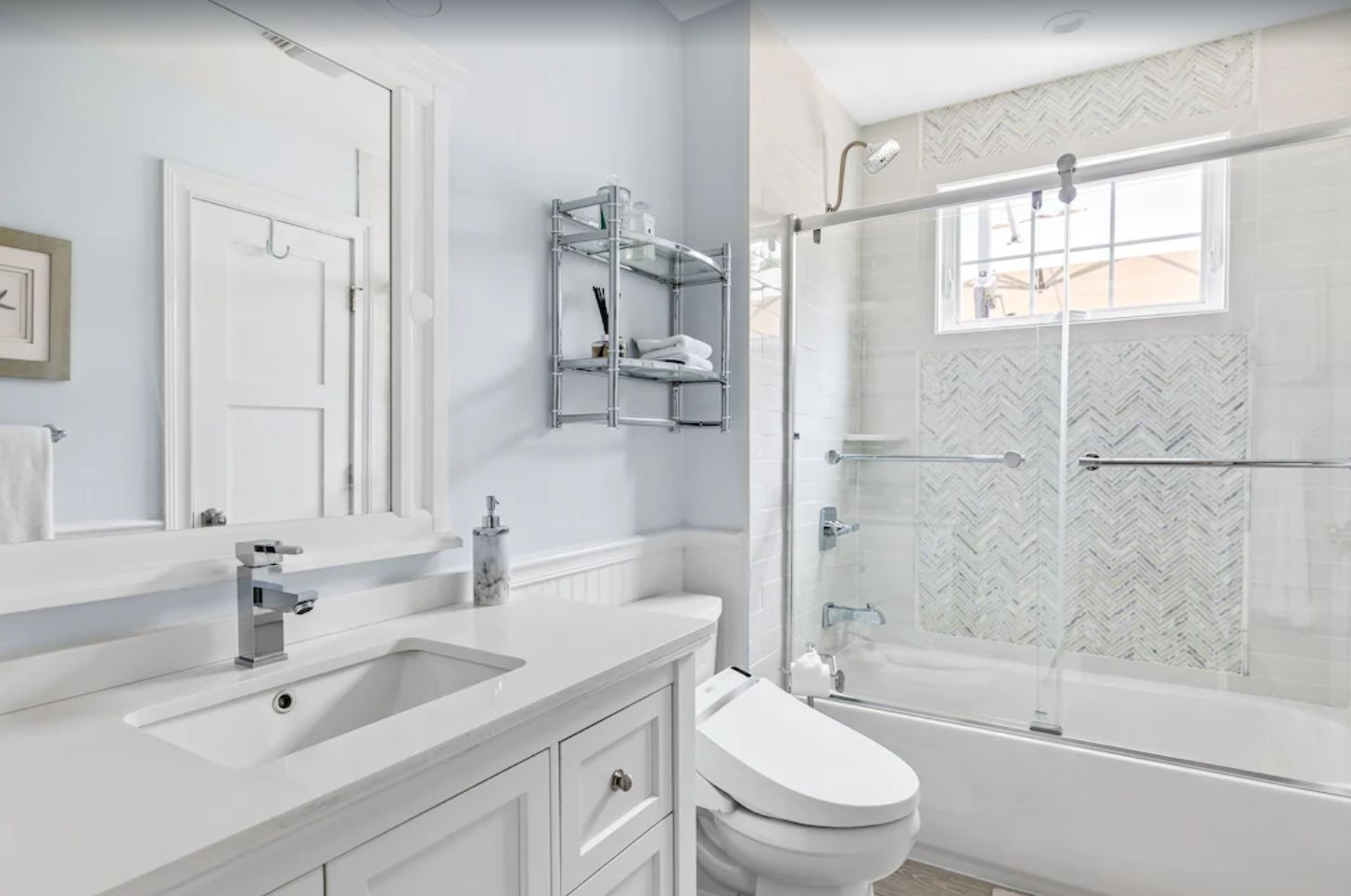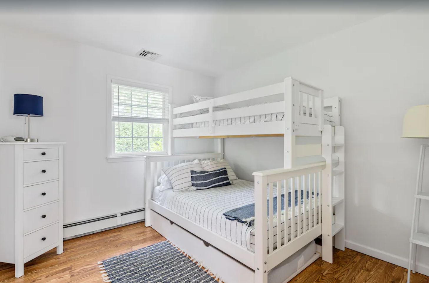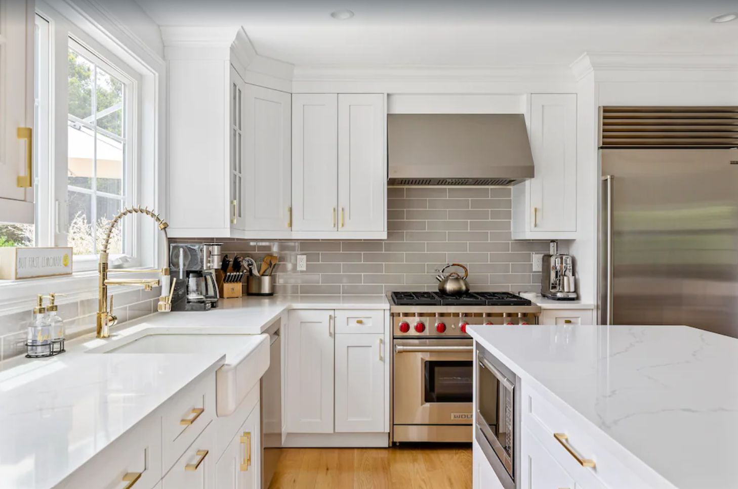 Newly Renovated with Four Bedrooms, Two Full Baths and a finished basement with ample room for all. Living room with flat screen tv open to the kitchen. All designer appliances in the kitchen (6 burner Wolff stove, subzero refrigerator), with an island. The kitchen offers plenty of room for cooking. The kitchen is fully stocked with Calphalon cookware and a Weber grill on the deck outside. Bonus Den with flat screen tv and extra seating.