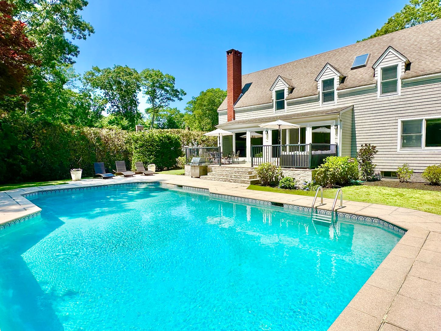 A summer to remember will be yours in this beautifully decorated traditional home where entertaining is a pleasure. The comfortable primary bedroom and bath will be just what you need at the end of the day. There are 3 guest bedrooms plus 2.5 baths, spacious eat in kitchen, formal dining room, and not to mention a finished basement. The heated gunite pool is surrounded by manicured landscaping. This property is located in a Private Beach Commu