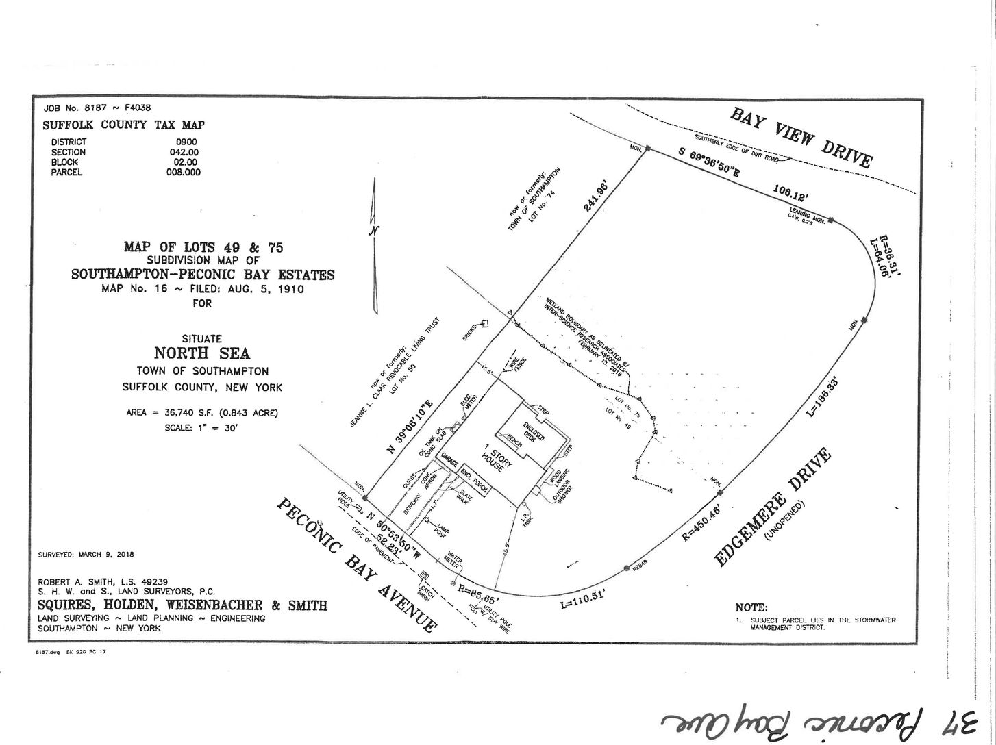 .Back of property is wet lands. Very close to Peconic Bay and can see bay from street, in front of house & from back deck. Reasonably priced for a quick sale. Existing septic & well, however will have to be up