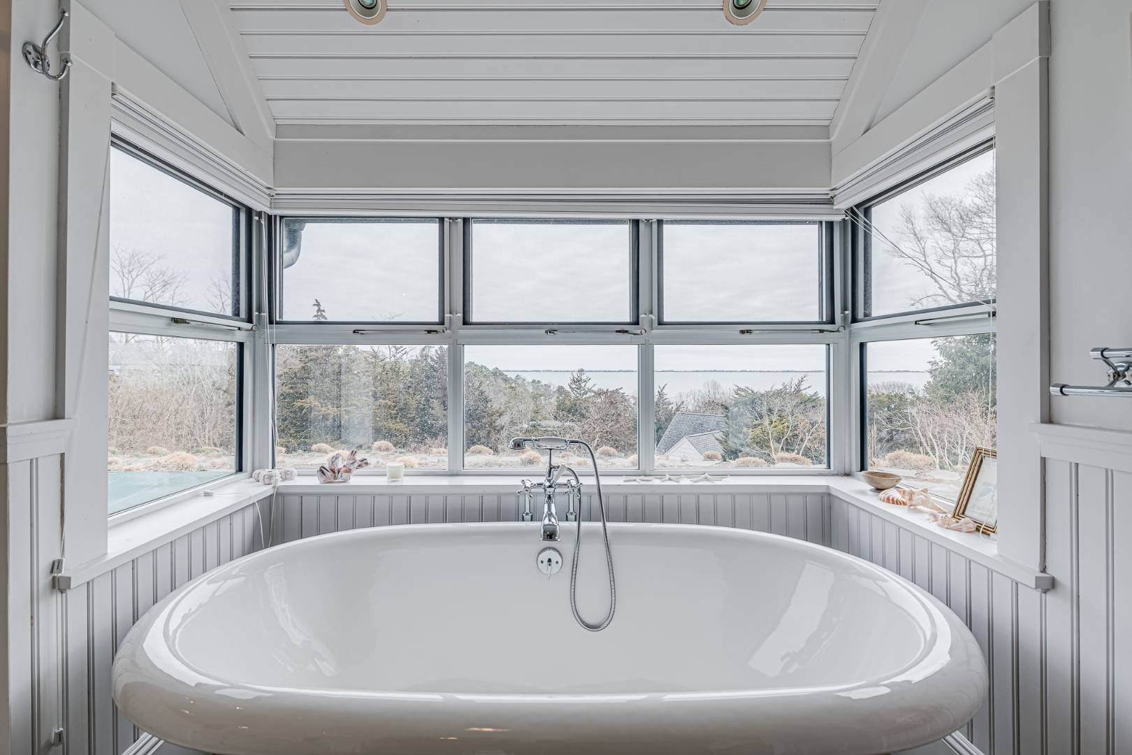 This rental has it all! Perched up high with fabulous water views. Modern chic flair design with six bedrooms in main house and a separate 1 Bedroom cottage apartment for guests. Two Primary bedrooms in Main house with king size beds, one at first level and another on second level with balcony. First level open-flow design dining, kitchen and living room with screened porch over -looking pool with spectacular water views. Upstairs second pr