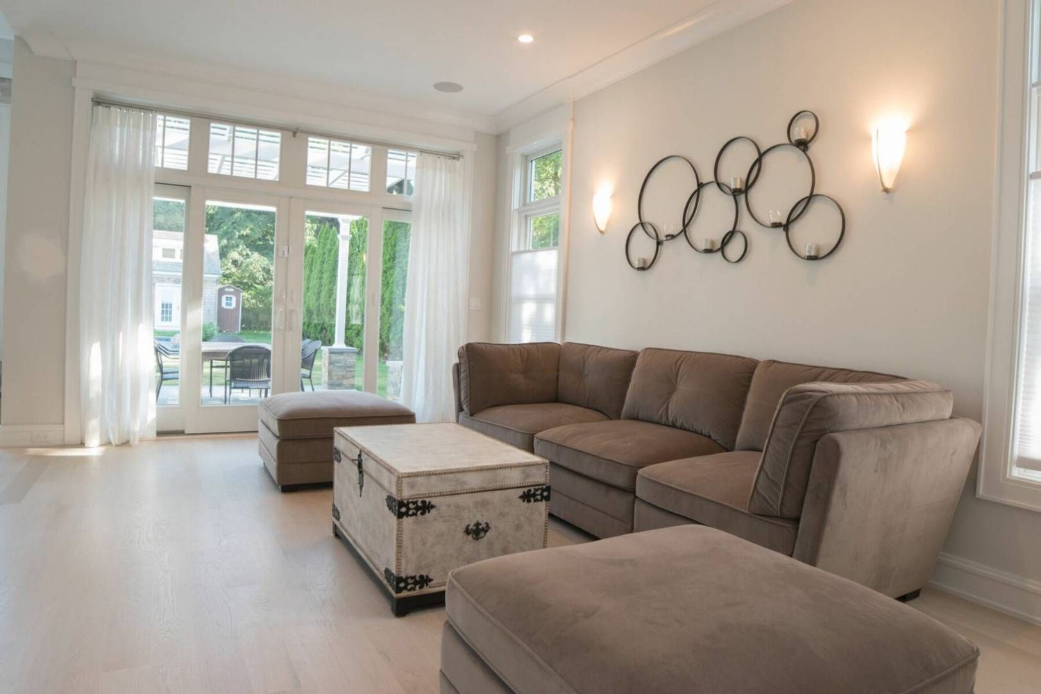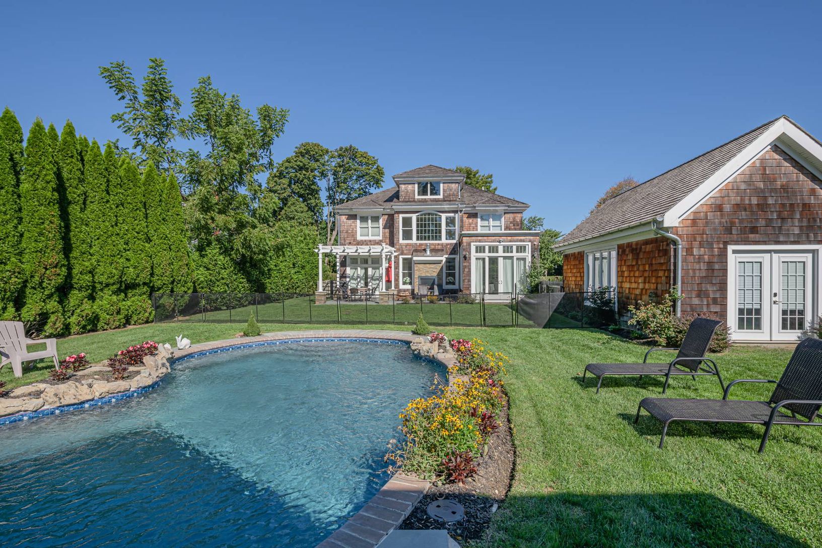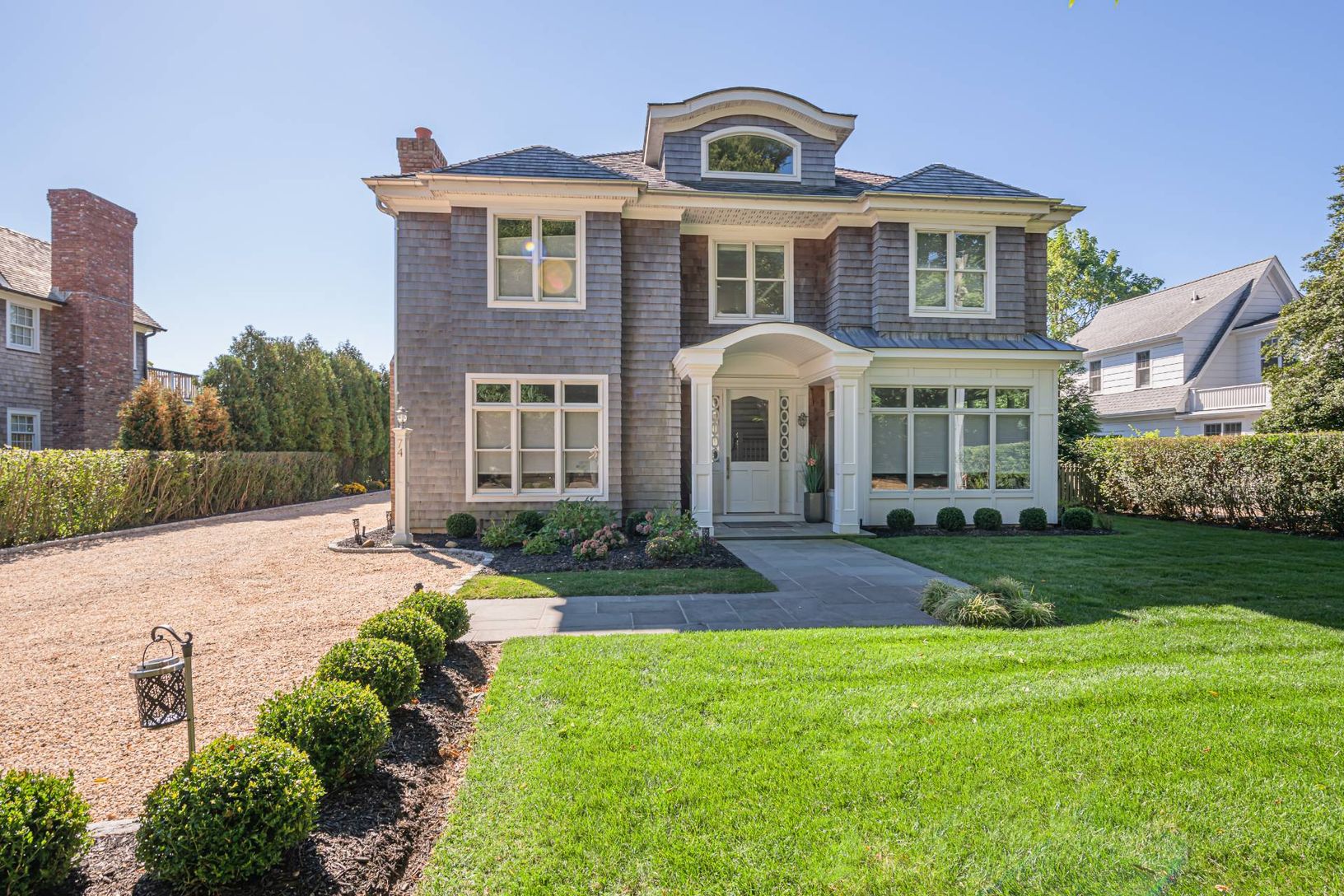 This sun-filled home on a quiet lane in the heart of Southampton Village is minutes to the ocean and to Village shops and restaurants. The first floor features a professional kitchen, living room, double-sided fireplace shared with a patio, large glass enclosed wine closet, and high ceilings. A sunroom, media room, study and full bath are also on the first floor. A spacious master bed