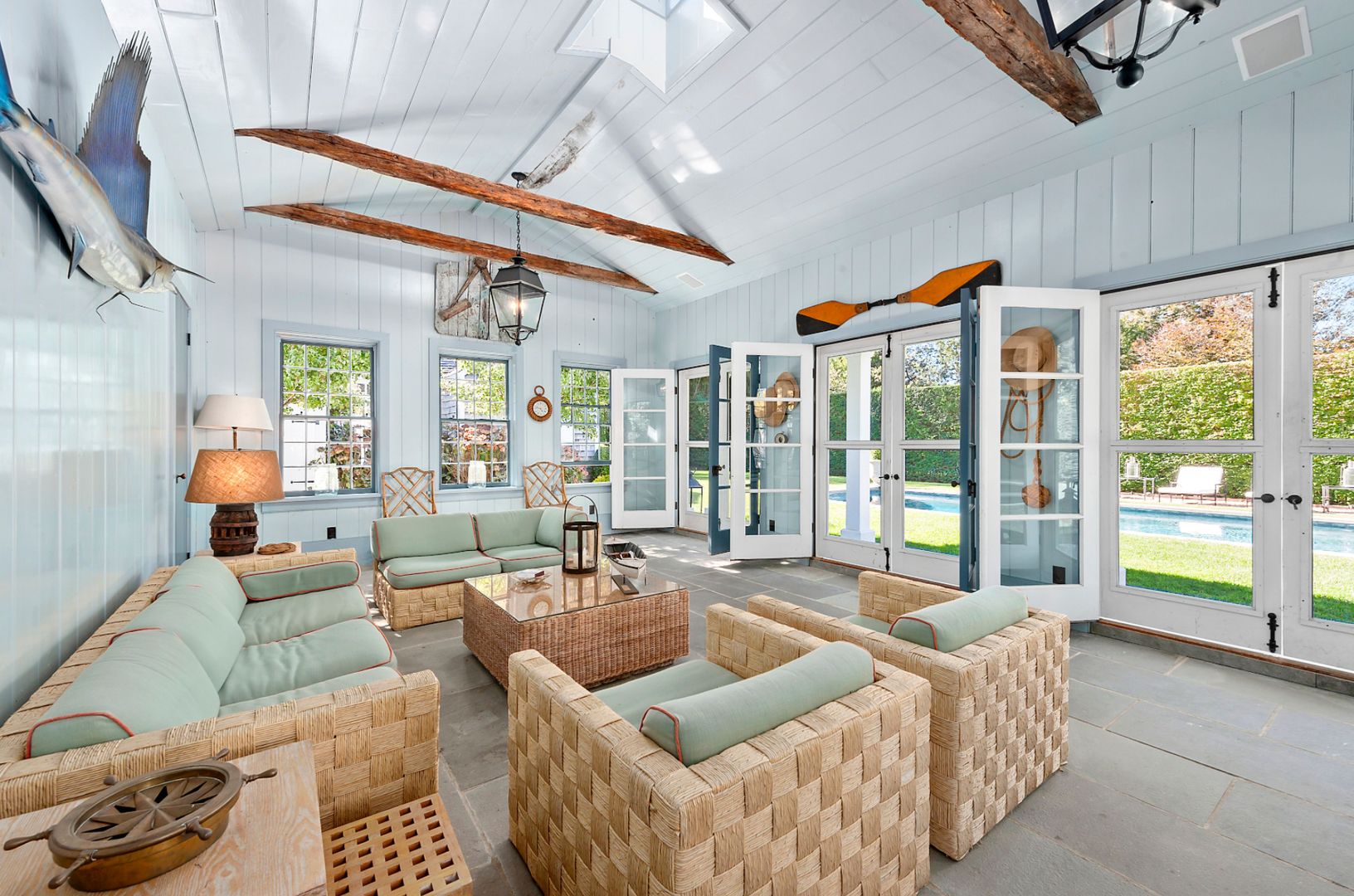 This unique property consists a main house, Cottage, and oversized pool house, situated on approximately half an acre. The two-story main house was recently renovated and has three bedrooms, two baths, living room, dining room, state-of-the-art kitchen and great room with central air and sound system throughout. The Cottage has one-bedroom, one-bath, kitchen and living room. The 13x40 heated gunite pool with pool house is perfect for summer da