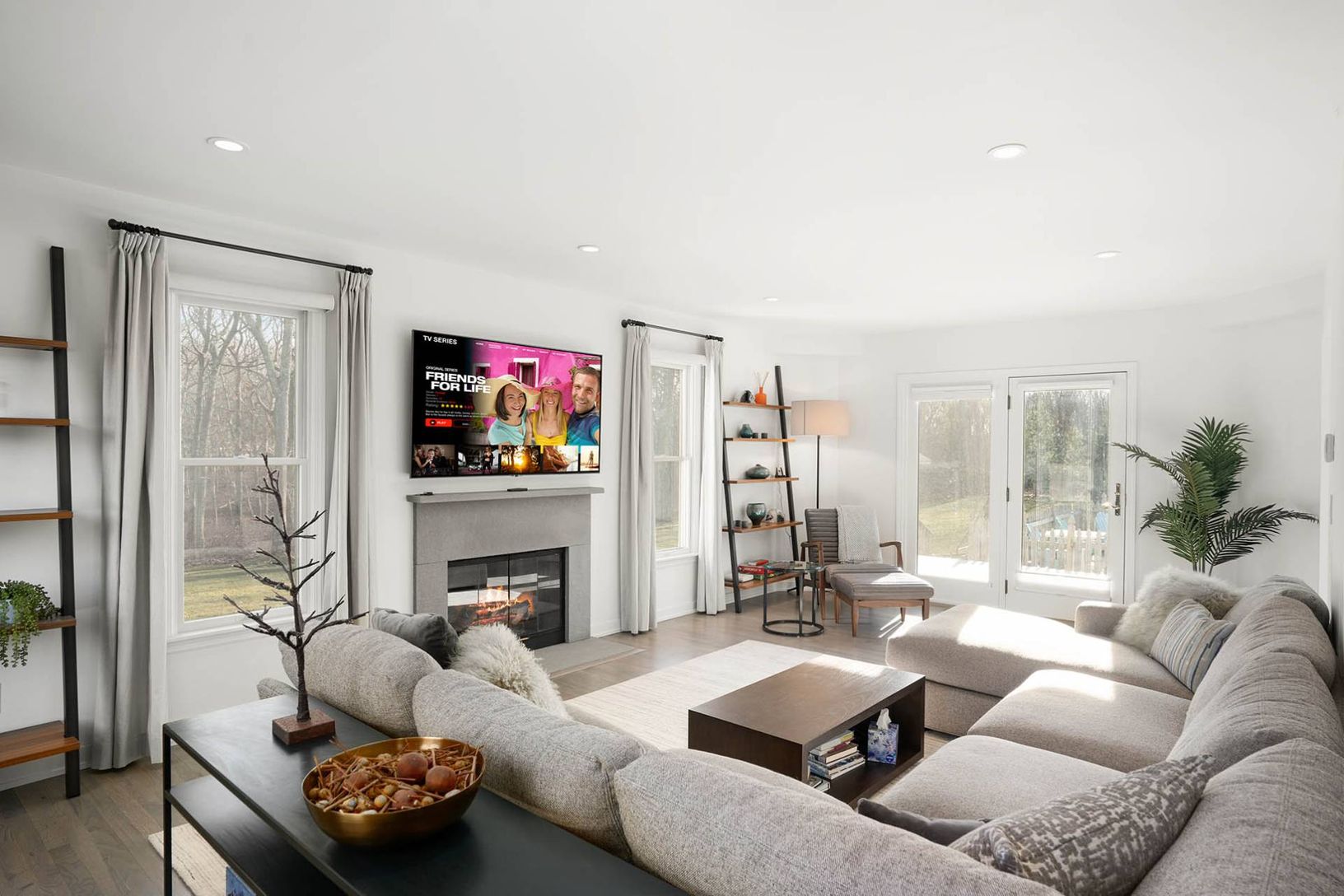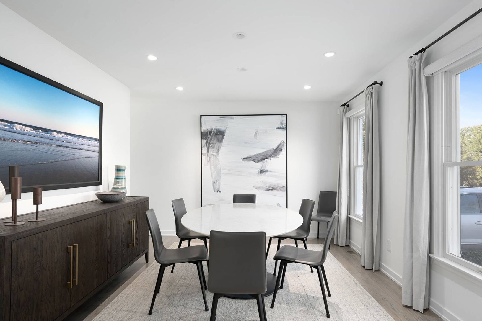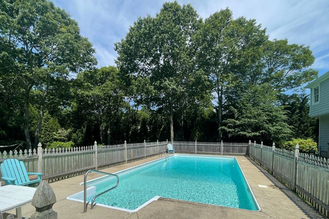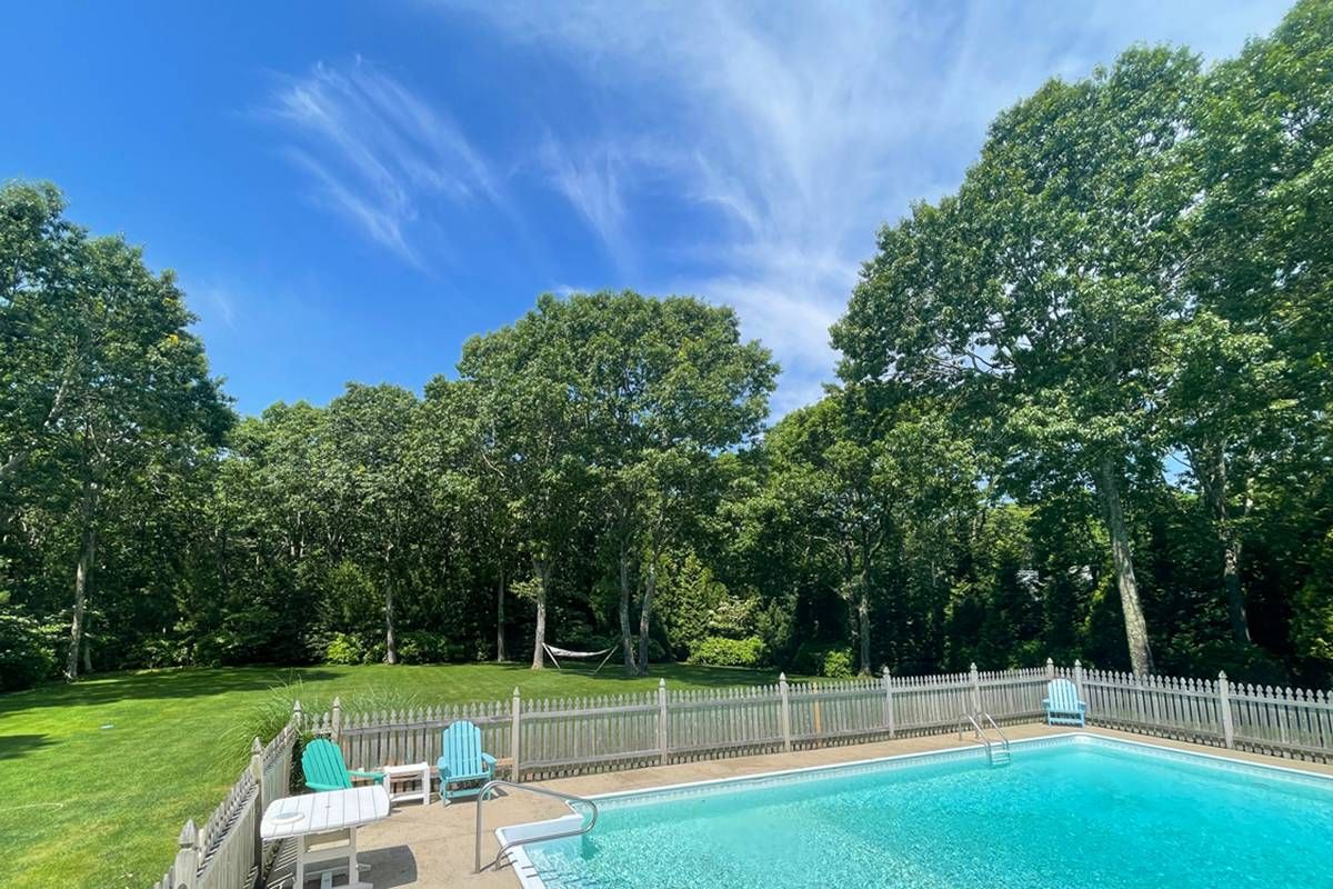 Sleek modern living in Southampton North Sea, Completely renovated in 2020. First floor-Living room with fireplace and television, formal dining room, eat-in kitchen, half bath. Second floor- Three en suite bedrooms plus a fourth bedroom and bath. Finished basement with large screen television, wet bar and full bath. Living room sliders open to large south and west facing deck. large open sport lawn adjoining reserve area. Sepárate fenced pool