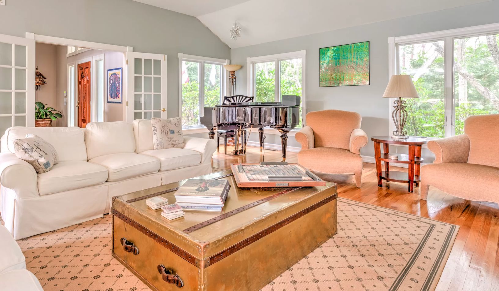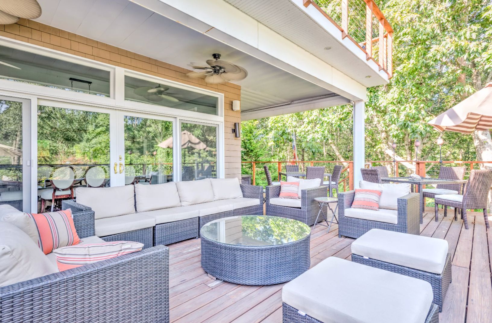 This stunning post modern home features five bedrooms and seven baths sitting on almost one and a half acres of property. Surrounded by tons of woods and gated in for that extra privacy. It is close to the amazing restaurants and shops of the town of Southampton. The style of this home consists of country casual it features a Belgium block driveway, as it leads you up to the stunning house you will be engulfed in lush breathtaking landscaping.