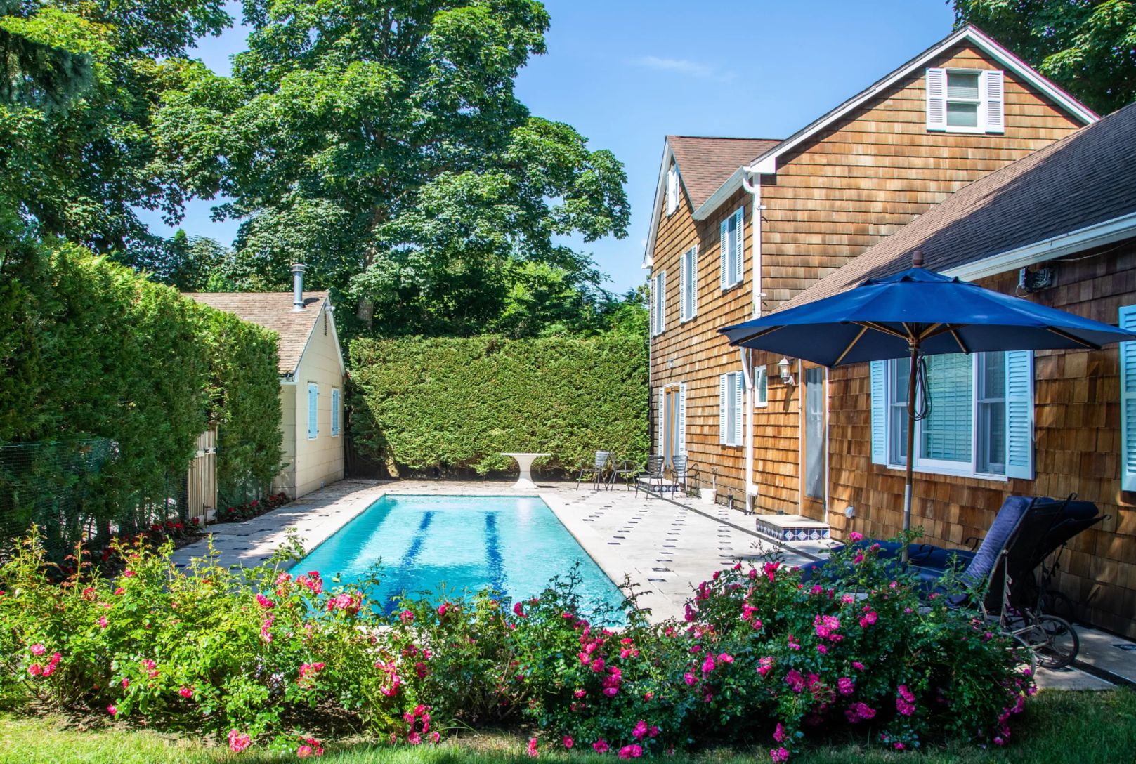 In the heart of the Village, close to all the activities that Southampton has to offer and less than one half mile from the ocean beaches. Living room with cathedral ceiling, dining area, stylish eat in kitchen, 4 bedrooms and 3 baths. Central air conditioning and heated gunite pool.