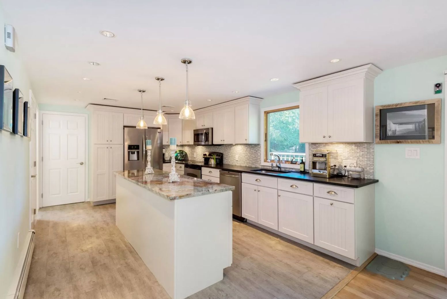 This 3 bed/ 2 bath contemporary house is located just a few minutes from Shinecock Hills Golf Course. Featuring an open lay out kitchen, living room with fire place and dining area with large glass doors viewing out into the backyard. where you can find a pool surrounded by a large patio and deck with lots of entertaining space.