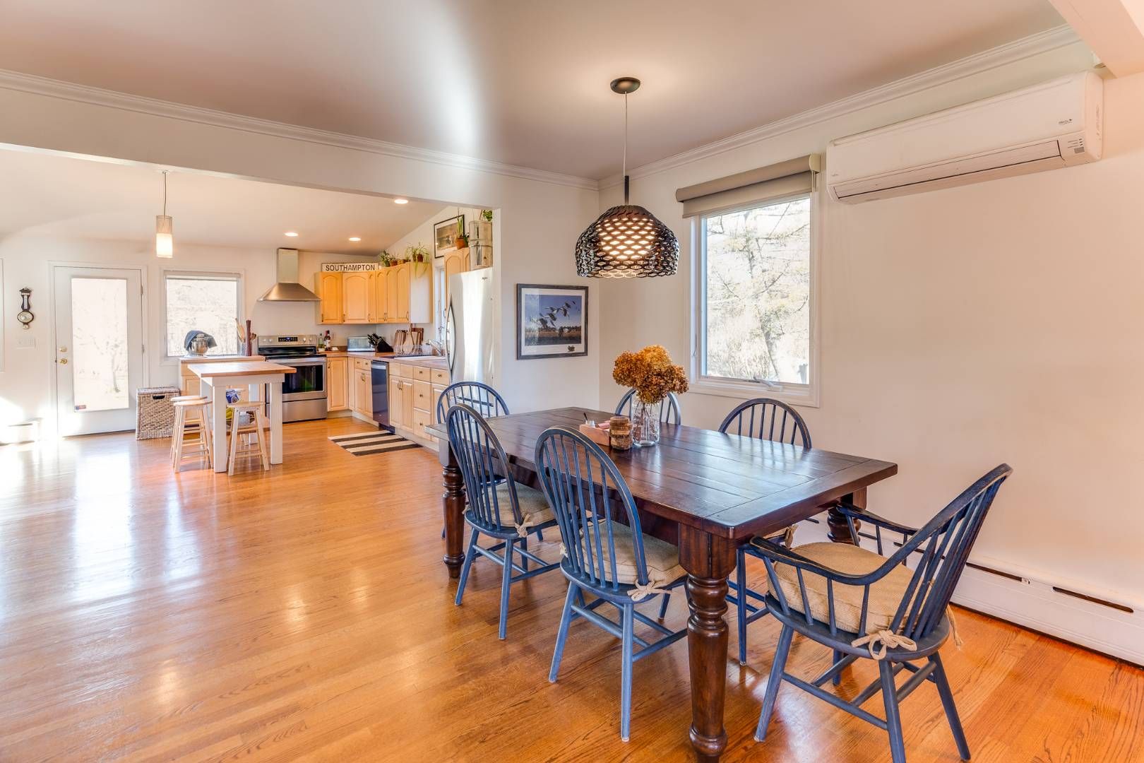 Conveniently located just north of Southampton Village. Super clean 2 bedroom 1 full bath home.Open floor plan with large kitchen and dining area flowing into living room with wood burning fireplace. Wall Fujitsu air conditioning. One car garage. Large yard perfect for entertaining and hosting a BBQ. Great value for summer 2026.