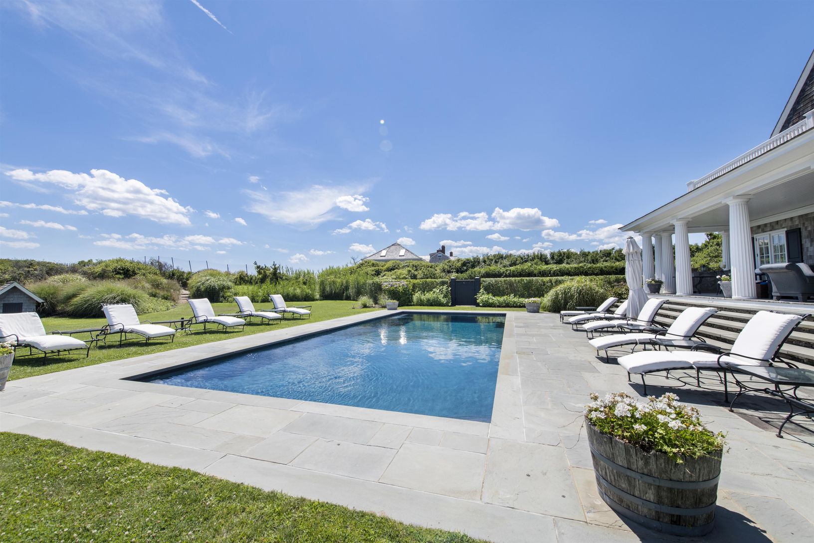 A rare opportunity now exists for one of the finest oceanfront estates in all of the Hamptons, this offering includes an extraordinary residence on over 2 acres, with over 125+/- ft. of bulkhead beachfront, tennis, and custom, ocean-facing, 40'x20' Gunite pool on Gin Lane. The gated entry opens to the shingle-style estate presiding over oceanfront dunes that slope down to the wide white sandy beach. A total of 10,400 +/- square feet of living