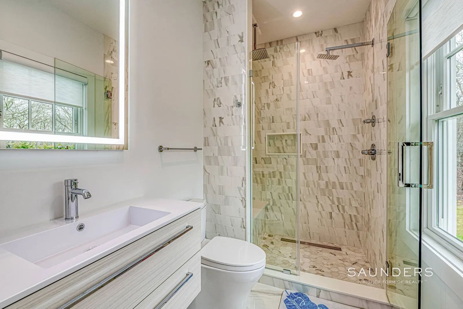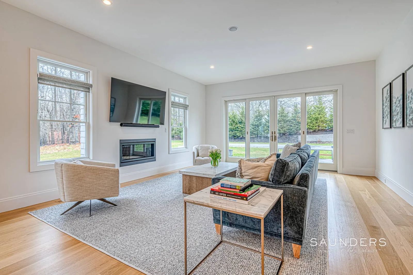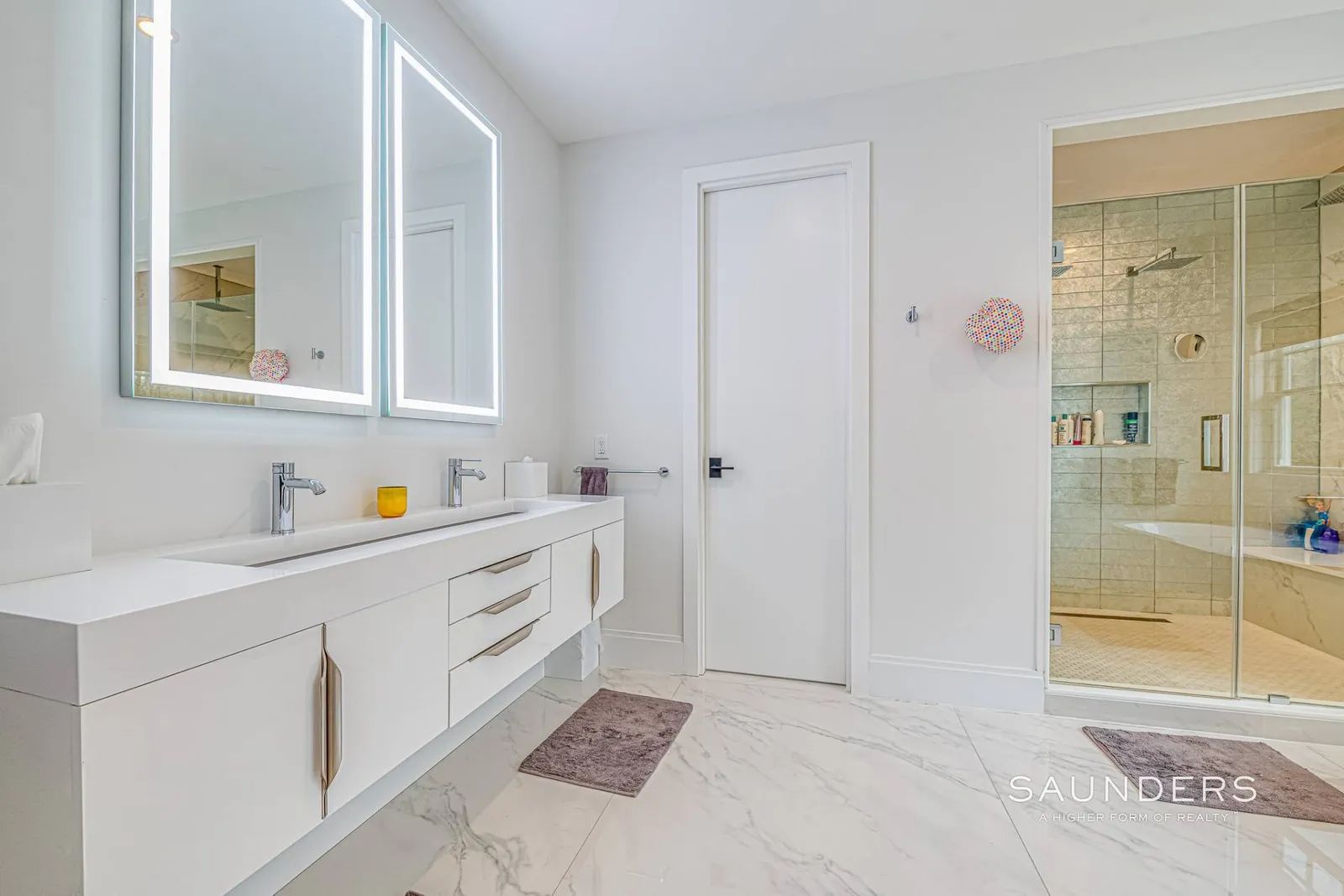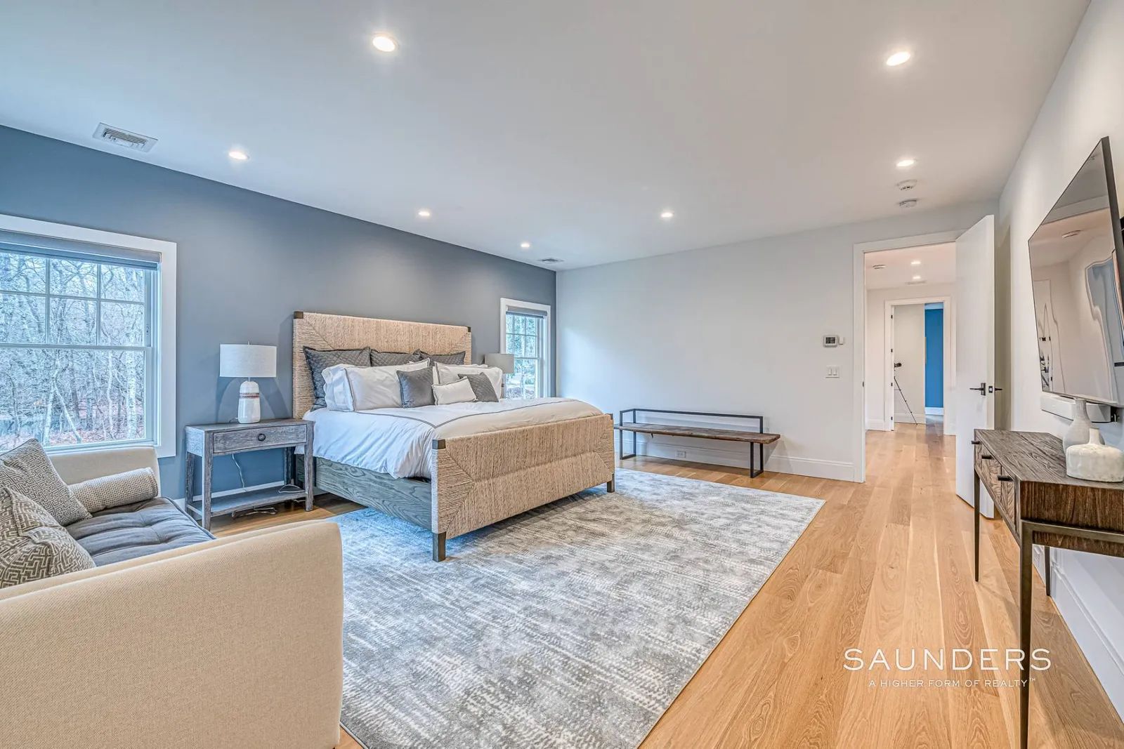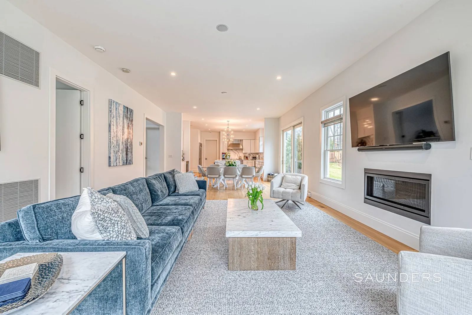 Never before available for rent, this glamorous, like-new 6,000sf +/- home is situated on 2.8 acres just outside Southampton Village with shops, restaurants and beaches located just moments away. Sunny first floor open living areas flow among the great room, living room with fireplace and eat-in kitchen with a magnificent island. Take your pick of the five generous ensuite bedrooms each with a beautiful bathroom and one on which is located on