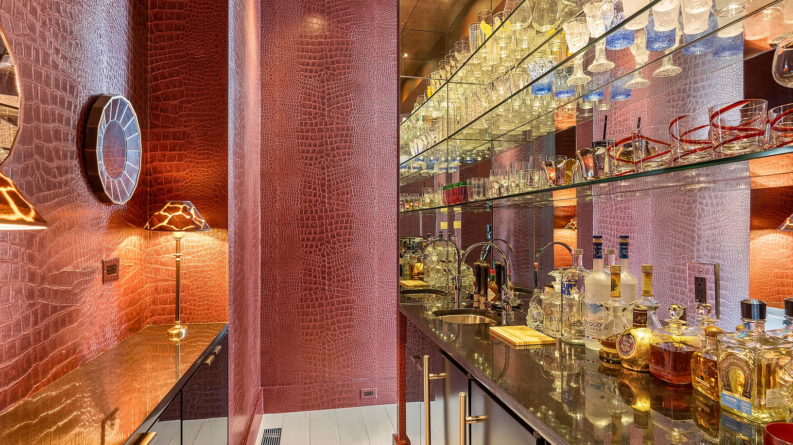 Built in 2016, with sleek decor in a super location this gated estate of nearly 4 acres has seven bedrooms, main level master suite with double baths and den. The main floor has 14 feet high ceilings and French 9 foot glass doors to covered porches, the living room has a gas elongated fireplace to wow guests. The grand dining room has a custom built in bar area. Guests can take the elevator to the second floor where there are four guest suites