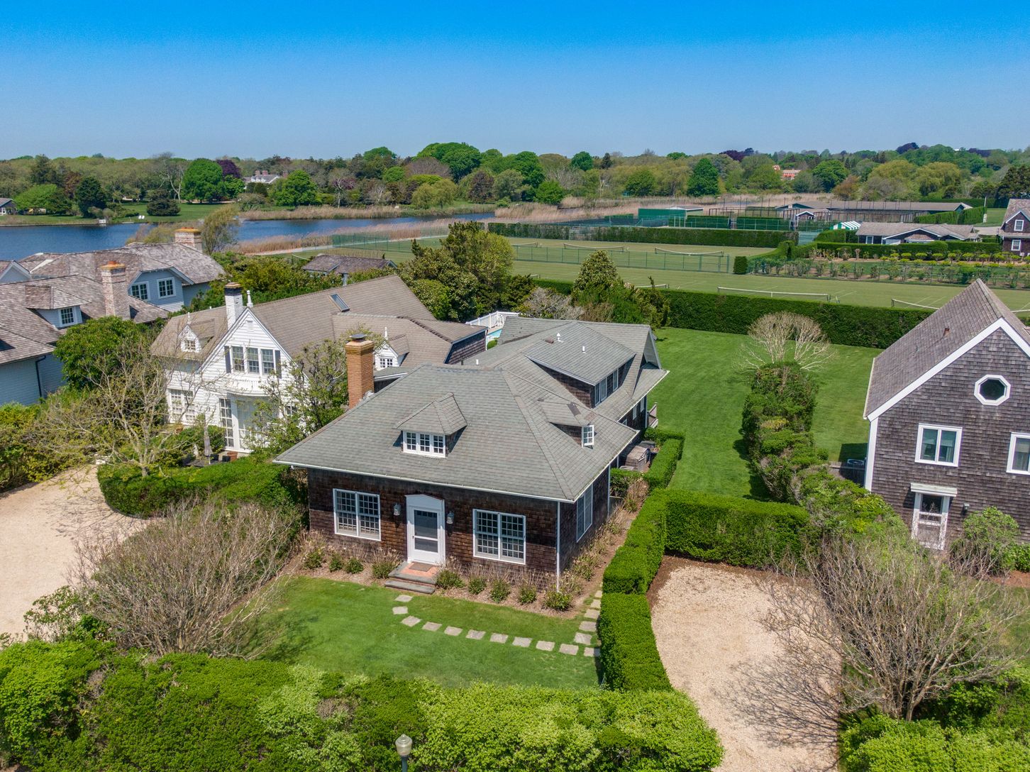 Across the street from the beautiful beaches of Southampton is this quintessential estate Carriage House tucked behind high privet hedges. Renovated to retain its circa early 1900's charm and architecture, this 5 bedroom, 3.5 bath is one of a kind. The very efficient kitchen is outfitted with a Viking stove and Subzero refrigerator for dinners at home or head into Southampton Village to sample the local restaurants. Professionally decorated as