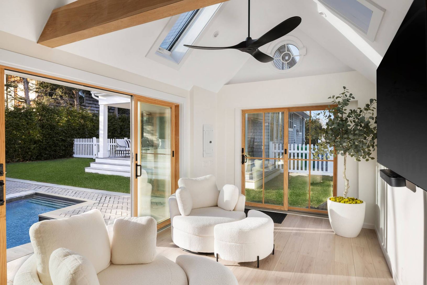 Located less than a mile to the heart of Southampton Village, this beautifully renovated three bedroom home offers style, comfort and convenience. Thoughtfully redesigned in 2024, the property boasts exceptional amenities, including a heated pool and a newly outfitted pool house ready for summer 2025. Beyond the gated entrance, a charming carriage house and ample parking welcome you. The spacious grounds feature a covered porch and sunny heate