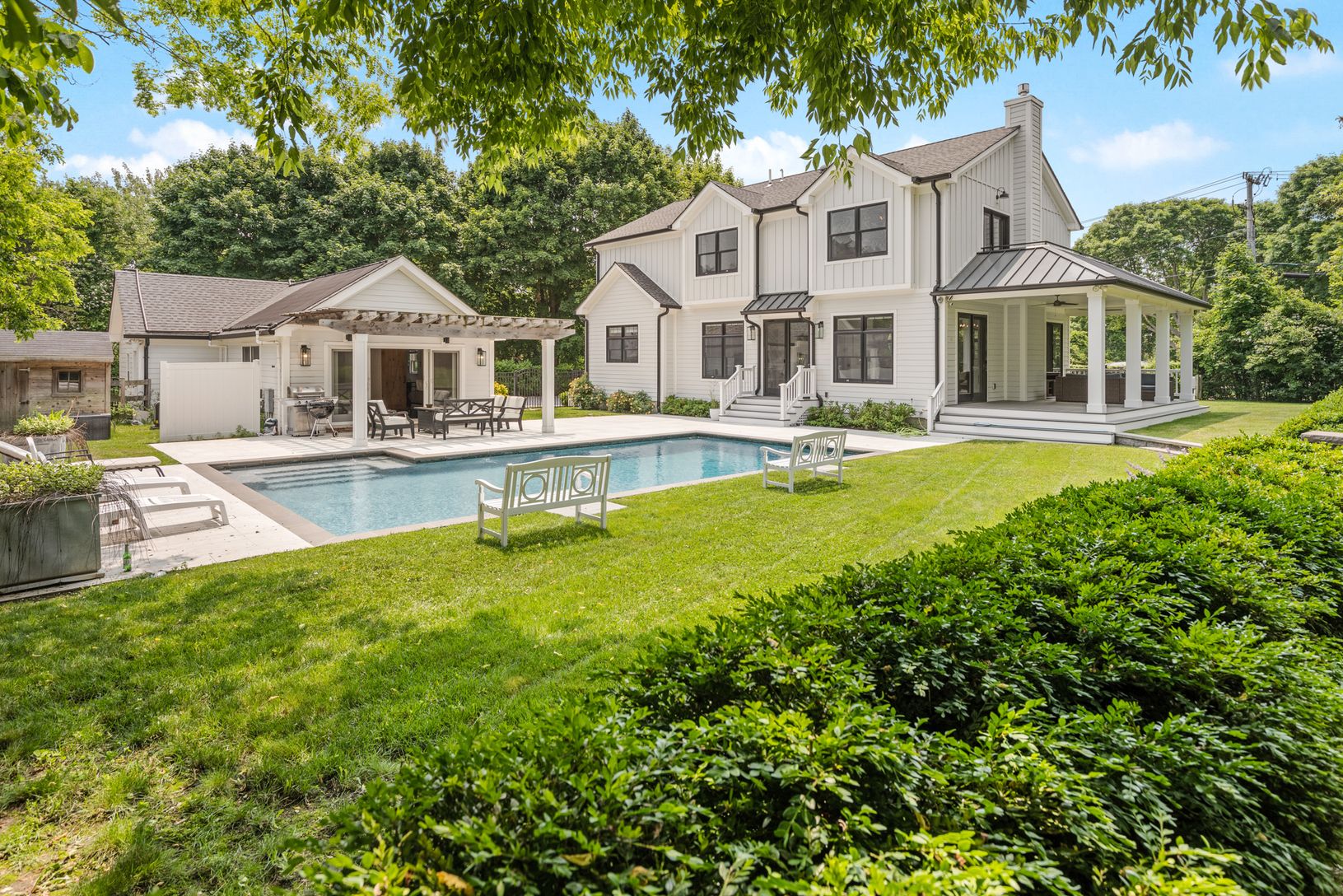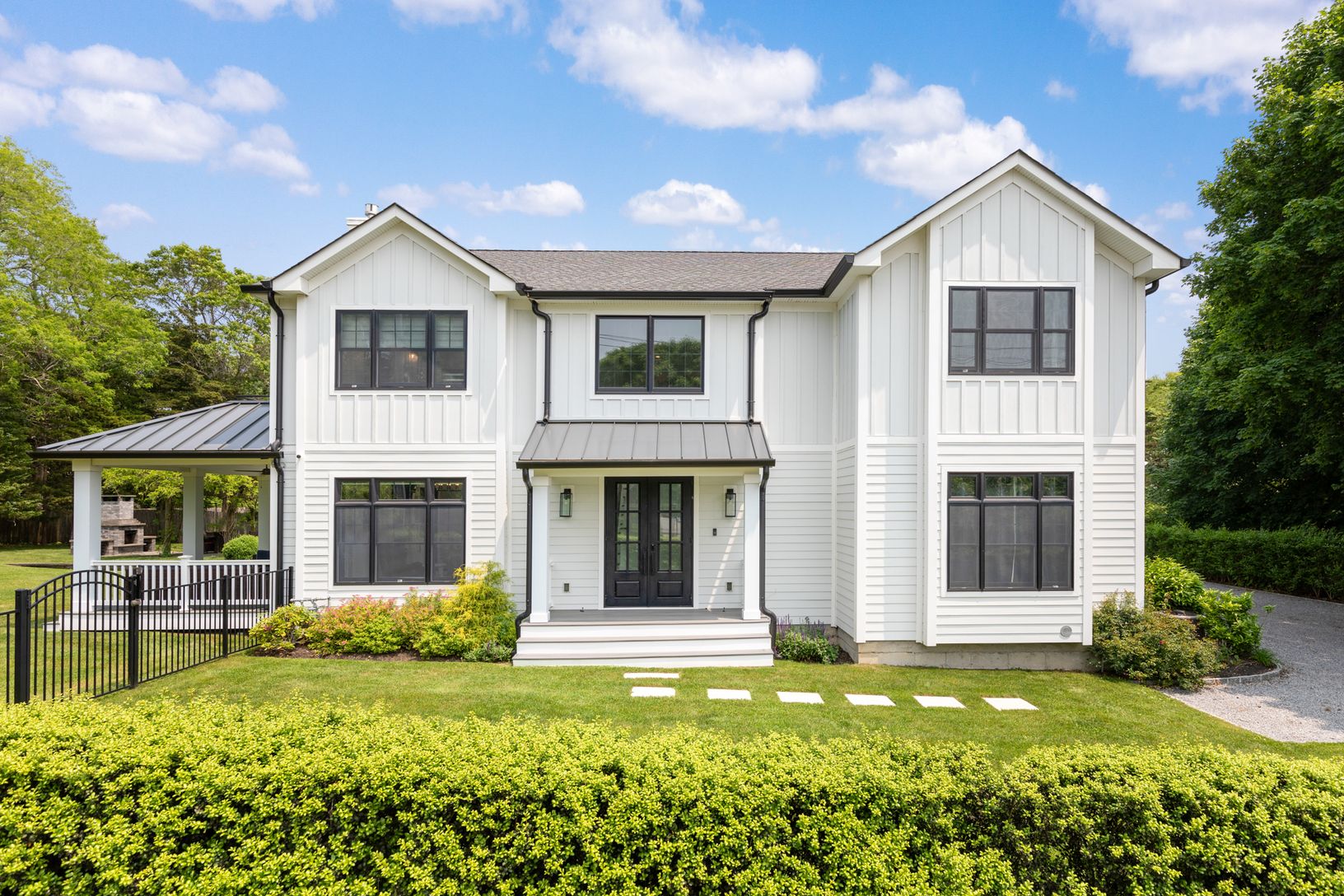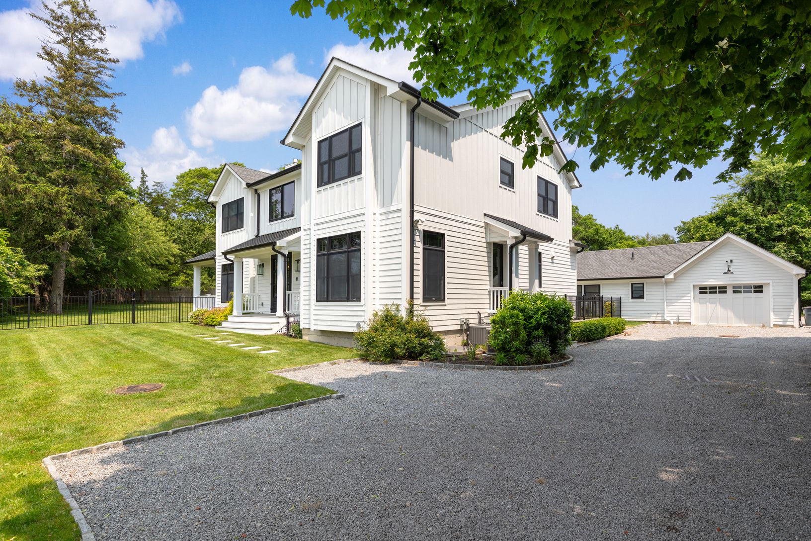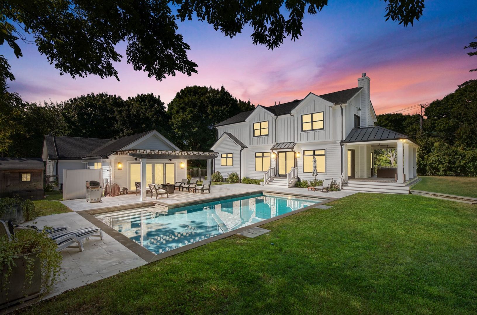 Experience elevated Hamptons living in this impeccable new construction featuring 7 bedrooms and 6 bathrooms across three beautifully finished levels. Designed with a modern open layout, the main floor flows seamlessly from a state-of-the-art gourmet kitchen to a spacious dining area and a sunlit living room anchored by a sleek fireplace. Expansive black-framed windows and three sets of sliding glass doors flood the space with natural light an