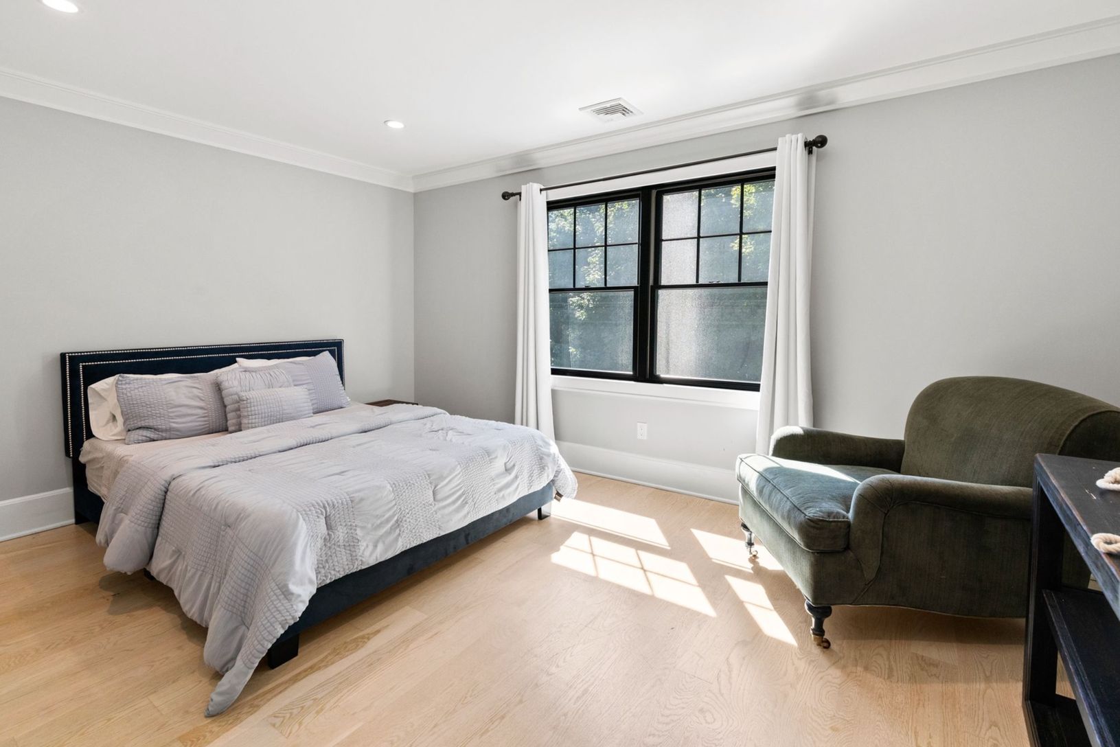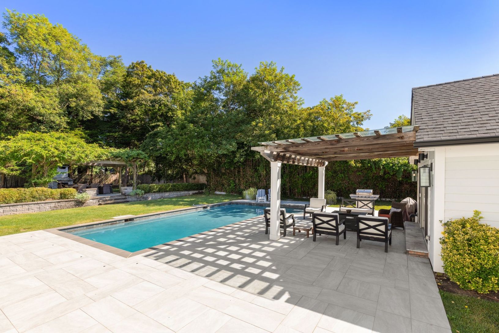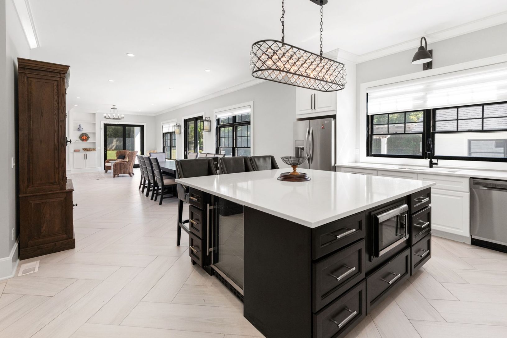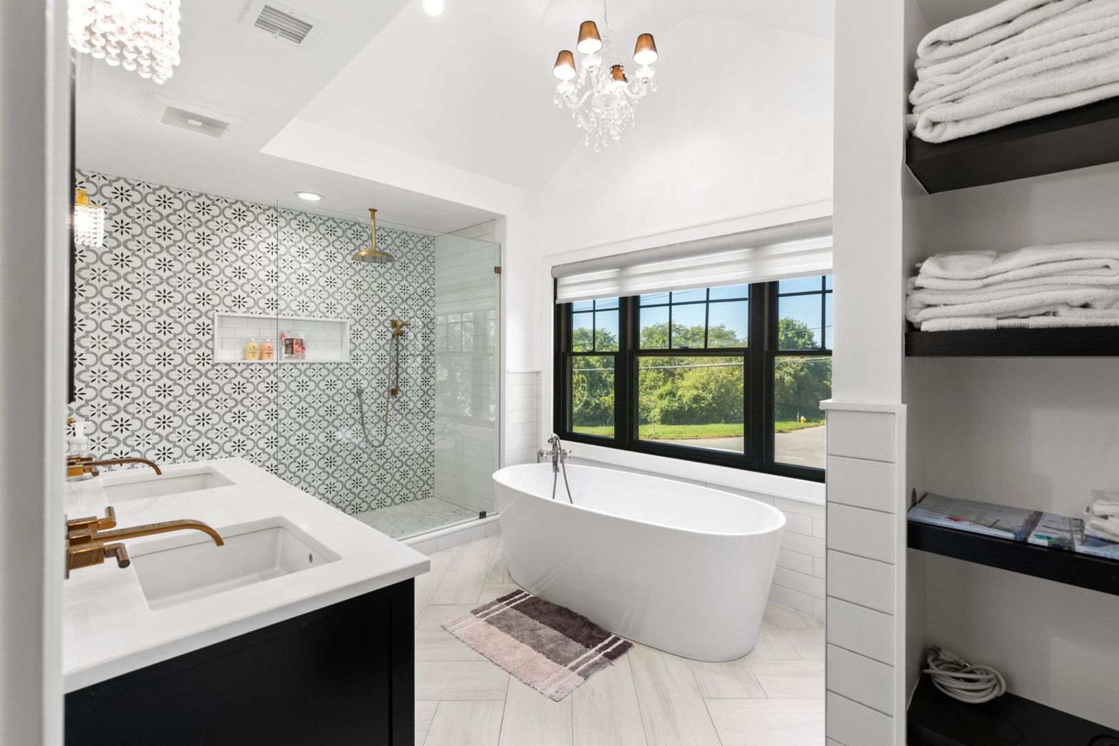 Experience elevated Hamptons living in this impeccable new construction featuring 7 bedrooms and 6 bathrooms across three beautifully finished levels. Designed with a modern open layout, the main floor flows seamlessly from a state-of-the-art gourmet kitchen to a spacious dining area and a sunlit living room anchored by a sleek fireplace. Expansive black-framed windows and three sets of sliding glass doors flood the space with natural light an