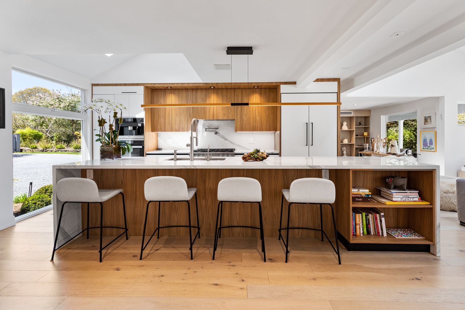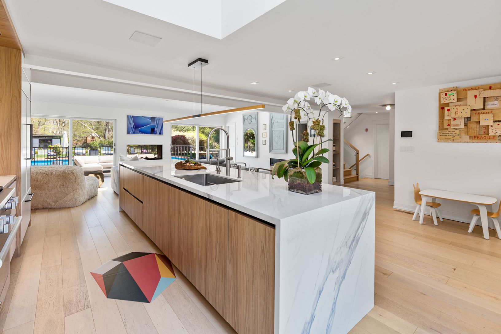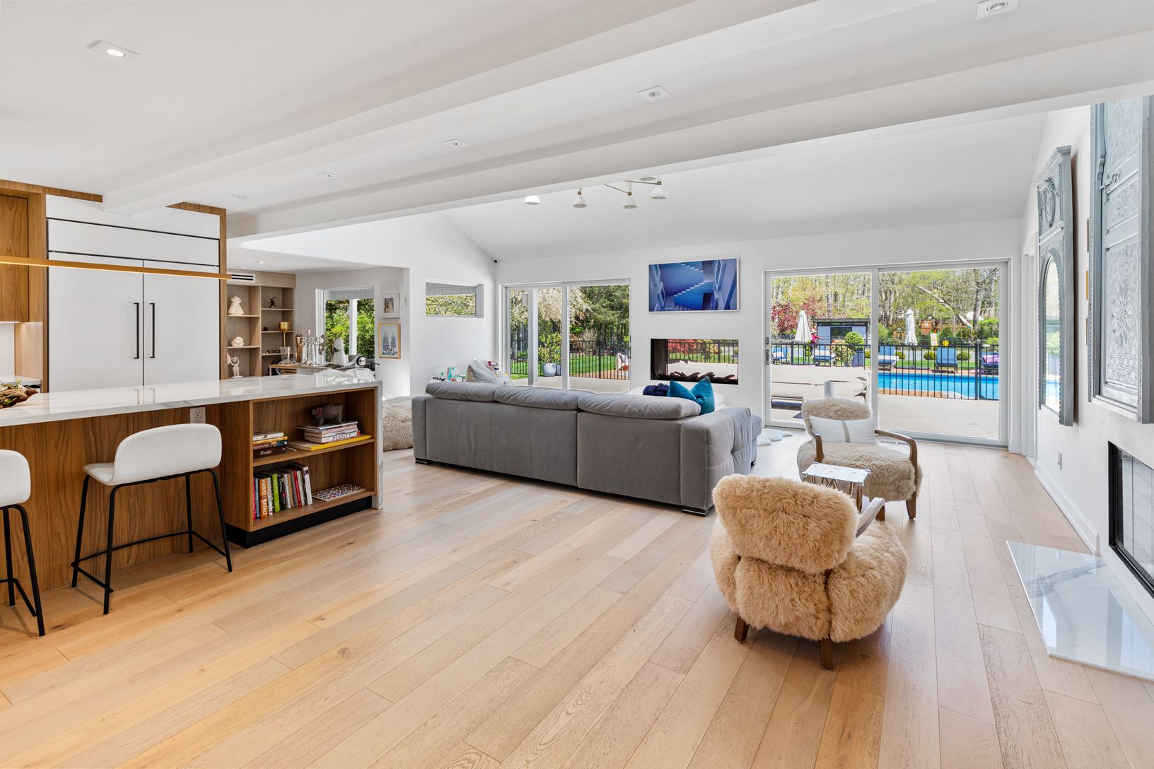 Welcome to an exquisite and impeccably designed estate in the heart of the prestigious Southampton. This stunning residence offers an unparalleled level of luxury living, showcasing exceptional craftsmanship and attention to detail throughout. Situated on a sprawling 1-acre lot, this magnificent home boasts over 4,800 square feet of living space, featuring 7 bedrooms and 6 full bathrooms. The grand foyer welcomes you with an abundance of natur