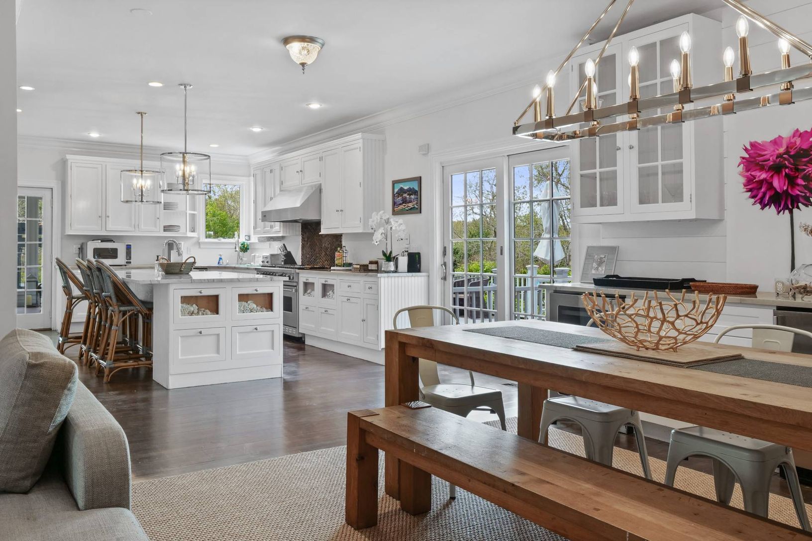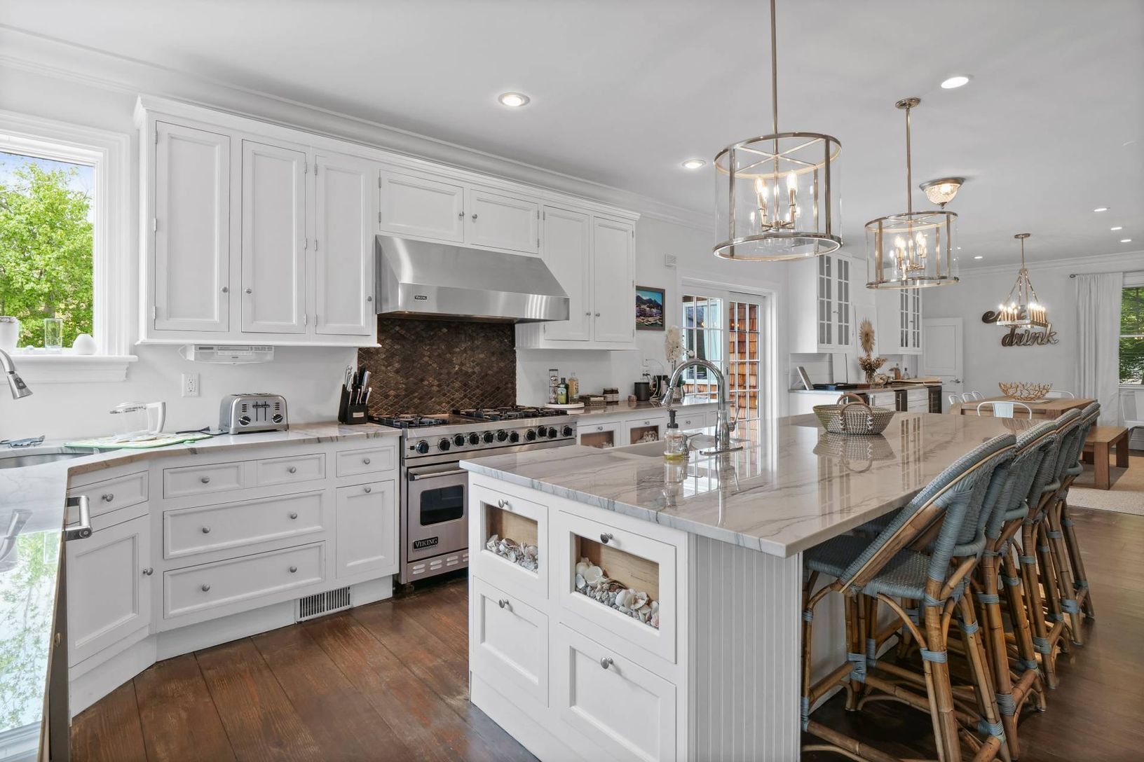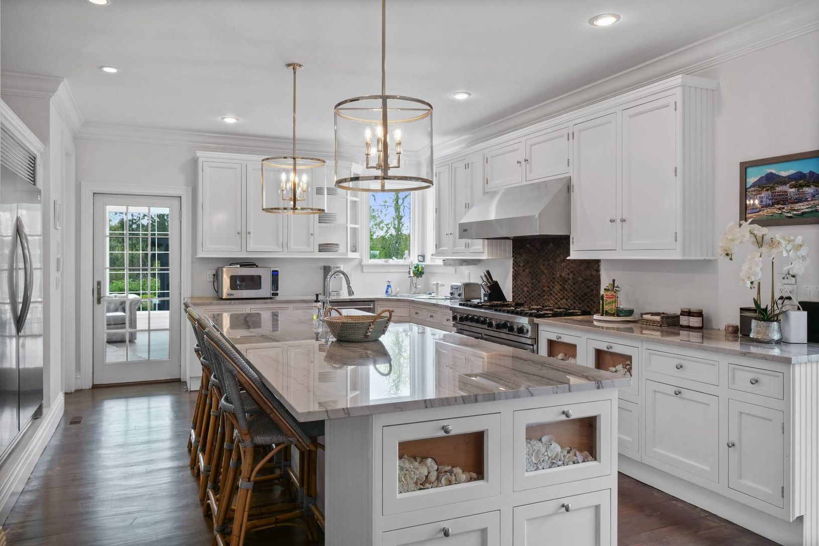 Renovated kitchen countertops with high-end quartzite stone and an extra-large island. - 2 new Gas Fire Table/pits in expansive yard - New dining room "Built in" with Sub Zero Wine Fridge, ICE Maker and Beverage Center, - New Heated Pool - New Stone Patio with Blue Ice Stone Coping and heat-resistant pavers - New Fully Windowed "floor to ceiling" Sun Room with beautiful views of yard. - New Lounge/2nd living/movie room with 85" TV - New Built