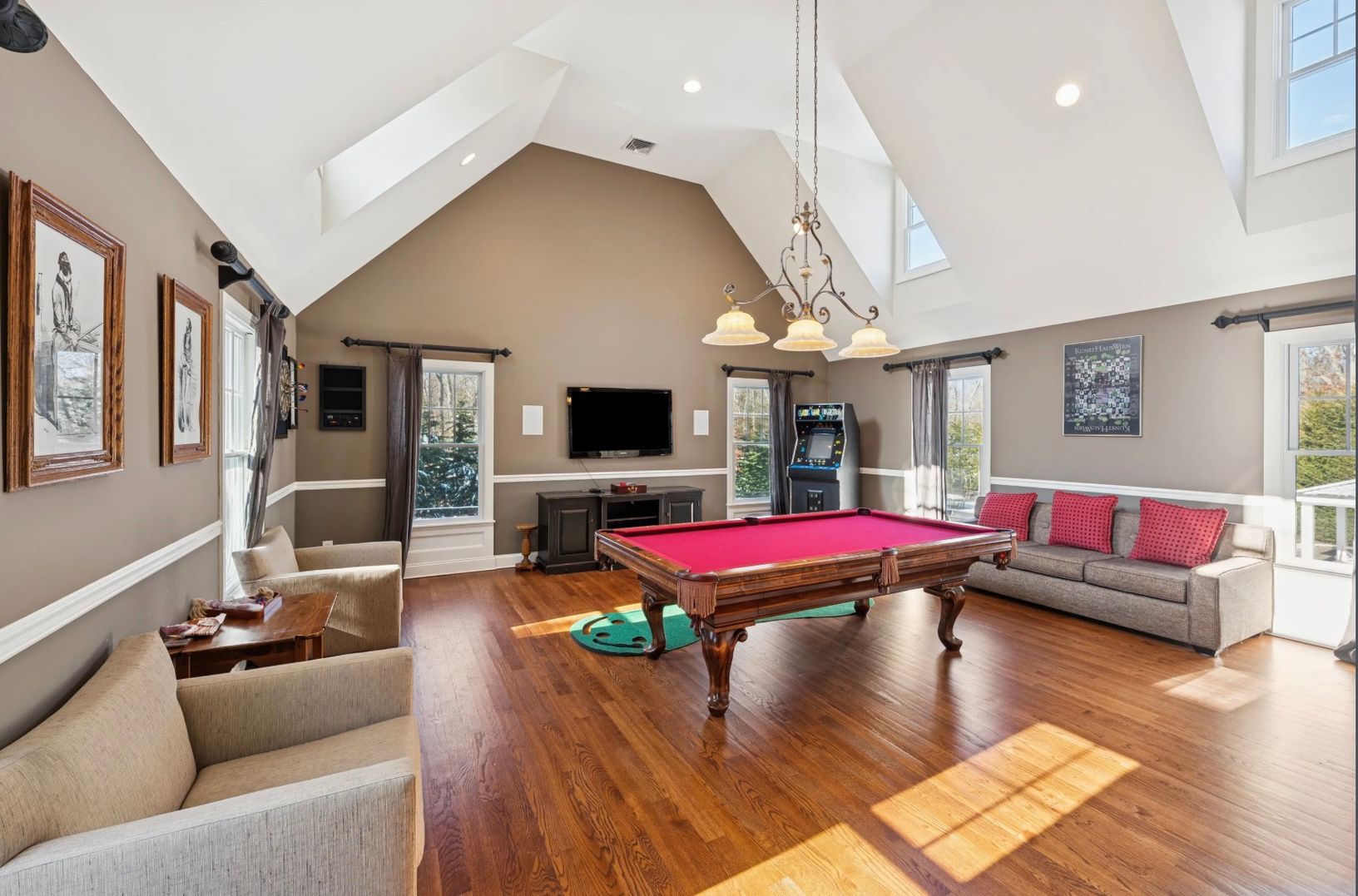 Experience the ultimate U.S. Open stay in this elegant 6,550 SF estate on 2.7 private acres, just moments from Shinnecock Hills and Southampton Village. Featuring 6–7 bedrooms, 5.5 baths, a guest wing, gym with sauna, theater, and entertainment spaces, this home is built for hosting and relaxation. Enjoy a resort-style outdoor setting with pool, hot tub, tennis/basketball court, and expansive patio for post-tournament gatherings.