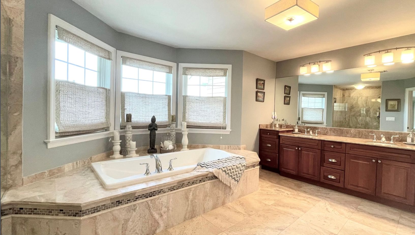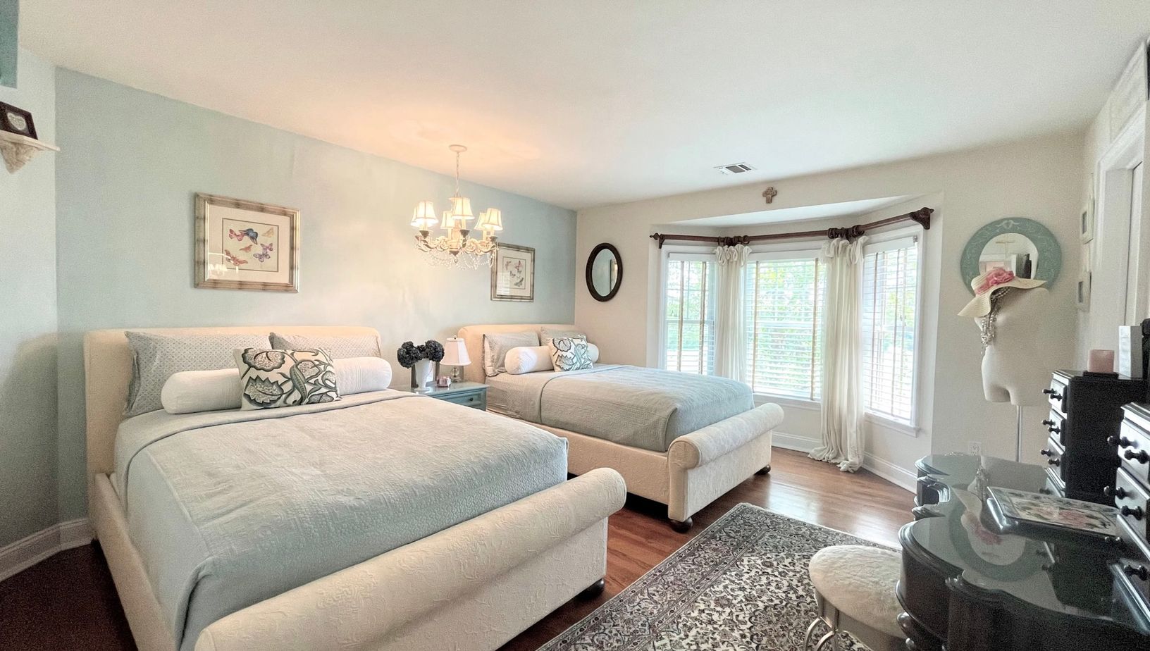 Pristinely maintained 5 bedroom, 4.5 bath Post Modern conveniently located on the fringe of Southampton Village on a privately landscaped half acre! Elegant features include a sun-drenched, oversized 2-story living room, 2 fireplaces, formal dining room, deluxe chef's kitchen with breakfast area, large family room, 3 ensuite bedrooms that include an enormous primary with luxurious limestone bath, walk-in shower & jetted tub. Other highligh