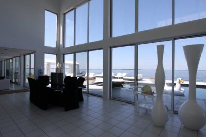 This magnificent waterfront two-story contemporary has much to offer. Handsomely furnished, features include a living room, dining area, kitchen, den, four bedrooms, four baths and a powder room. Additional amenities include a fireplace, central air-conditioning and a sparkling 25' x 44' swimming pool.