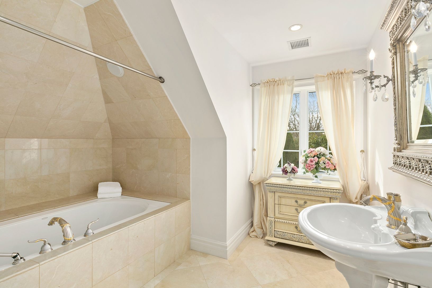 Impeccable European style villa is located in Southampton Village. Situated on 1.5 beautifully landscaped acres, this elegant French villa provides incredible ocean views from a rooftop terrace. This mini-European-style resort's features include elegant furnishings, living and dining room with fireplace, top-of-the-line kitchen, 8 bedrooms, 10 baths (primary with jacuzzi) and powder room. Additional amenities include a piano, billiards, gymnas