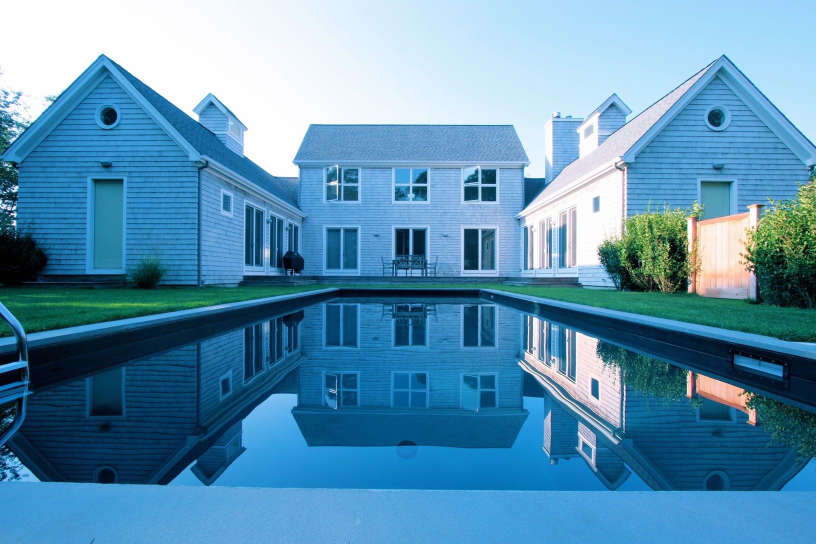 Living is easy in this elegant, airy and comfortable 18-feet-high-ceiling modern house. Decorated with Italian and German designer furniture and fixtures; three baths, three-plus bedrooms each overlooking the heated pool and elegantly-landscaped acre. Five minutes to Southampton Village.