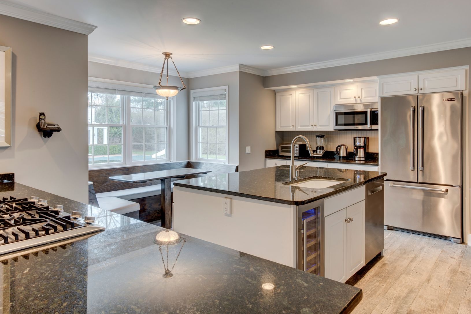 Fully-renovated Traditional with open kitchen, large den with a wood burning fireplace, formal dining, hardwood floors, covered back porch area and a finished basement that includes a fully-stocked gym. A private back yard, heated pool and pool house with a full kitchen and open living area, beautiful landscaping, two-car garage and so much more. Located minutes to village shops and restaurants, as well as the ocean.