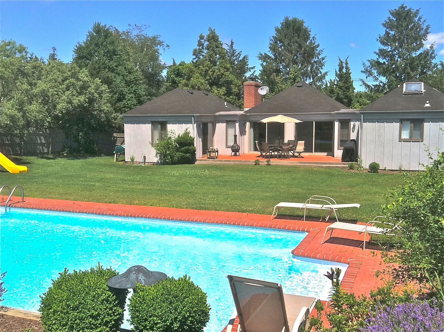 Located just outside the village of Southampton you will find this carefree summer cottage. Features include three bedrooms, two baths, central air-conditioning and a heated pool. The open floor plan affords lovely views of the terrace and garden, and the private yard borders a reserve. Short distance to ocean makes this most convenient location.