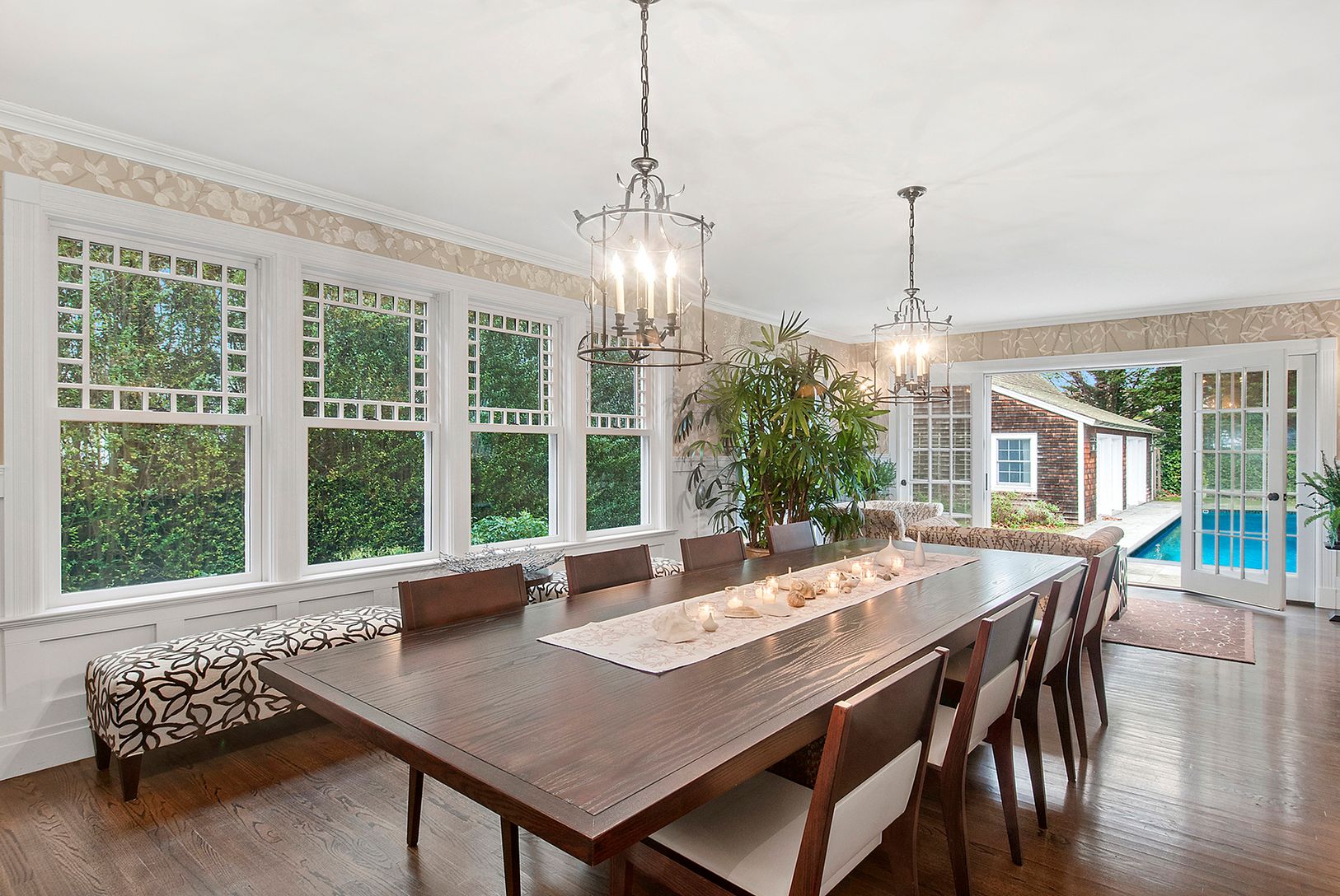 Stunning traditional Southampton, exquisitely decorated with custom furnishings, this five bedroom, five1/2-bath home is in a prime village location close to restaurants, shopping, movie theater, art galleries, ocean and bay beaches and transportation. Formal living and dining rooms, gourmet kitchen, breakfast area, finished lower level with lots of light, and pool house is complete with bath facilities. Heated gunite pool with outdoor dining