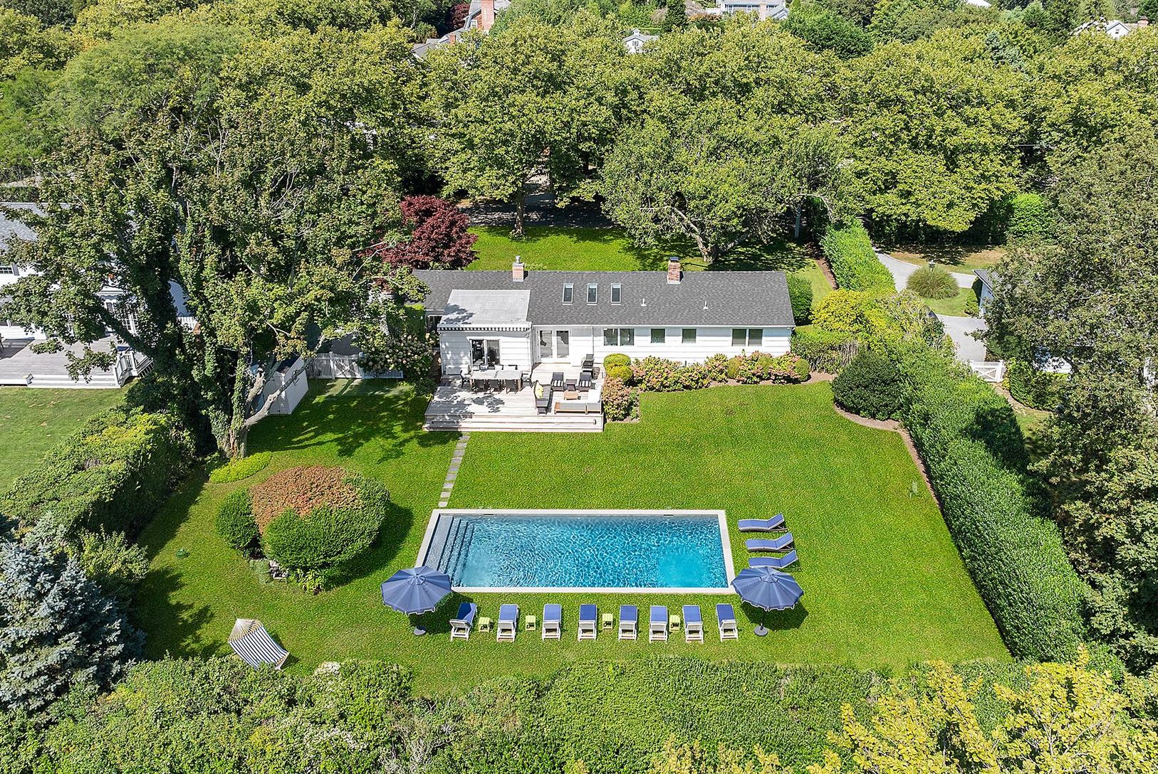 This "Modern Style" light-filled village cottage is situated on a beautifully-manicured half-acre. The exceptional backyard has park-like views backing up to an estate area with a 40' gunite pool and new mahogany outdoor terrace that is surrounded by mature landscaping. This inviting residence features a spacious new high-end kitchen with island, great room with cathedral ceiling, dining room, 5 bedrooms, 4 new baths and a finished basement, p