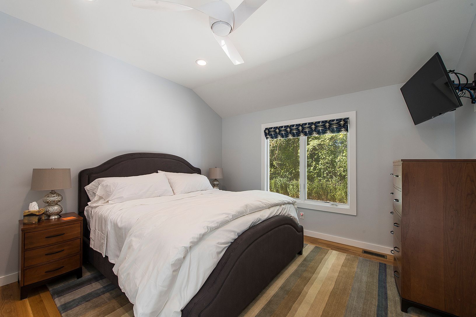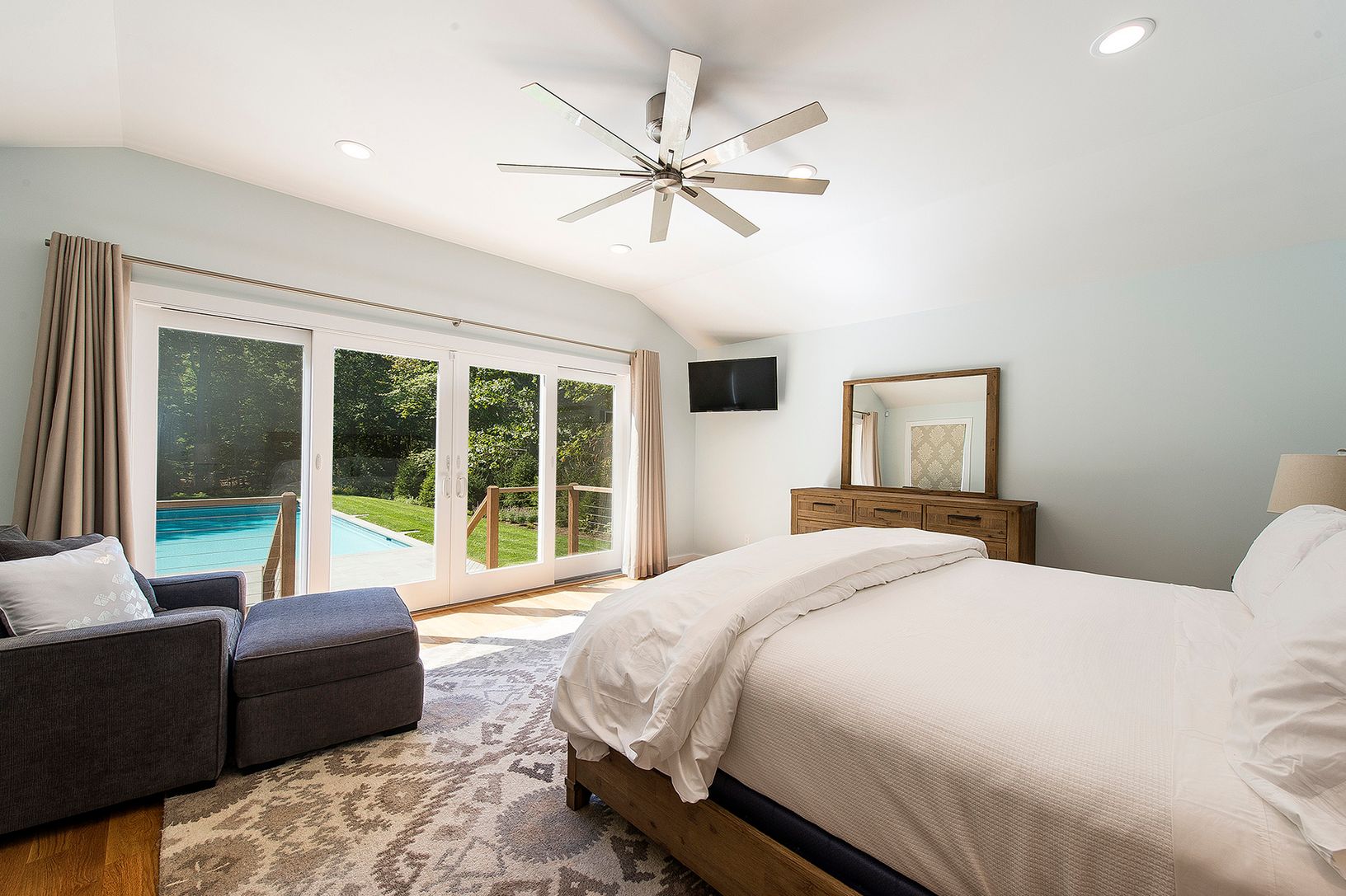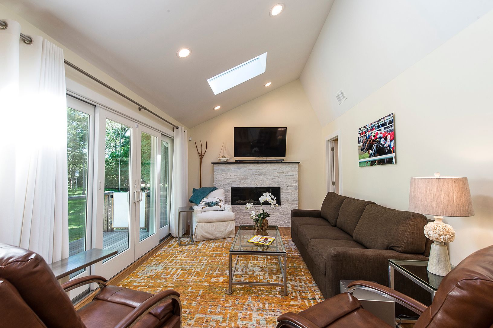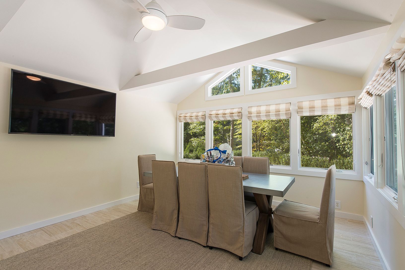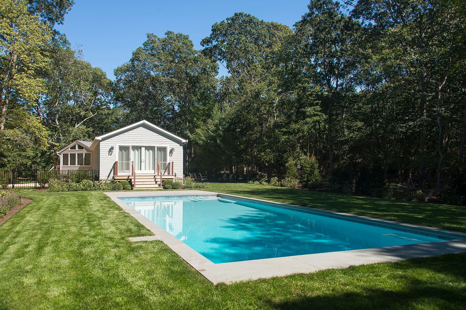 Enjoy this pristine, just renovated 4 bedroom home. The master suite opens onto the pool area. All rooms freshly decorated. Solar heated gunite pool, and water views across the road and your own private dock on Big Fresh. Everything for a perfect summer.