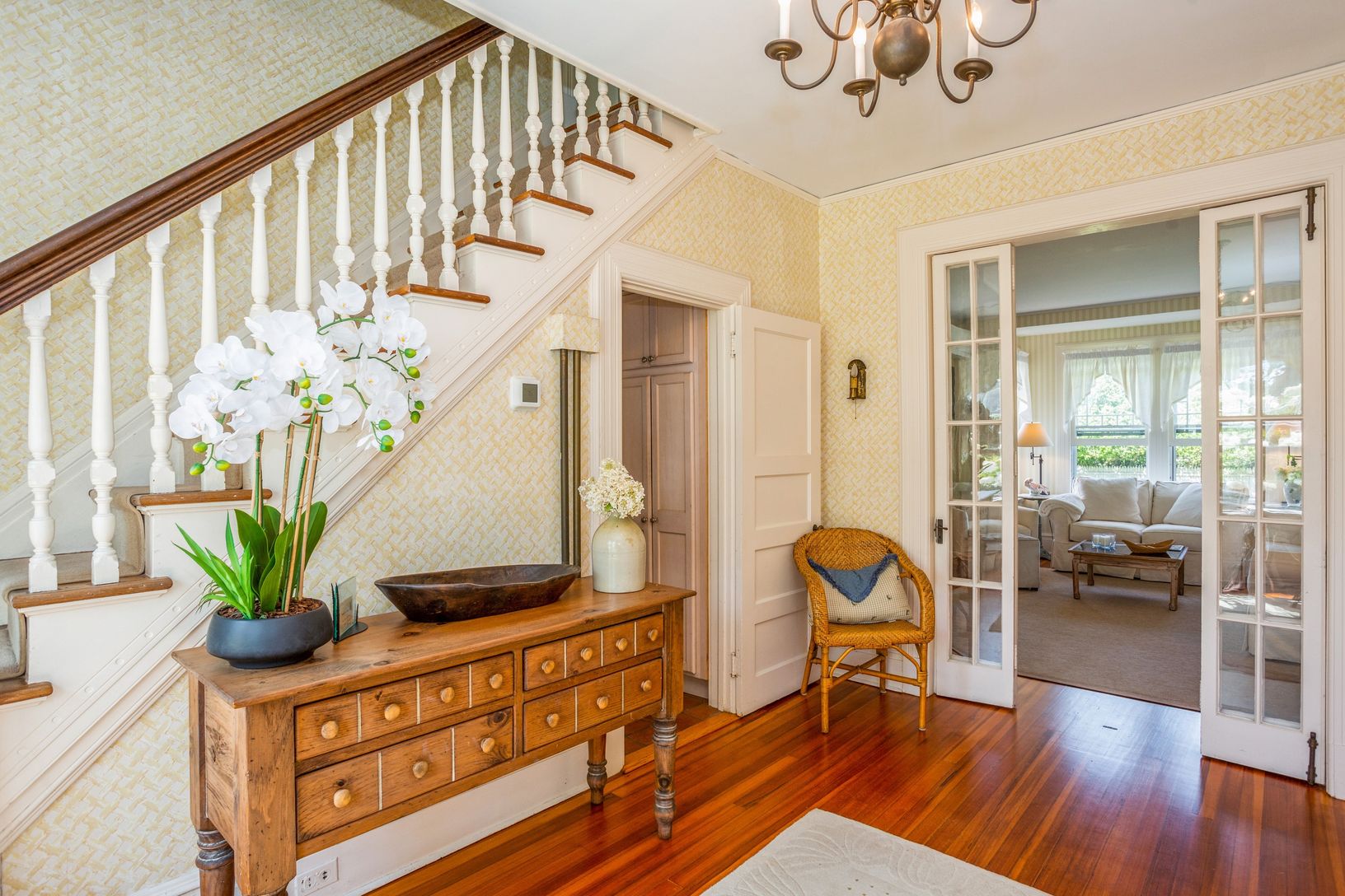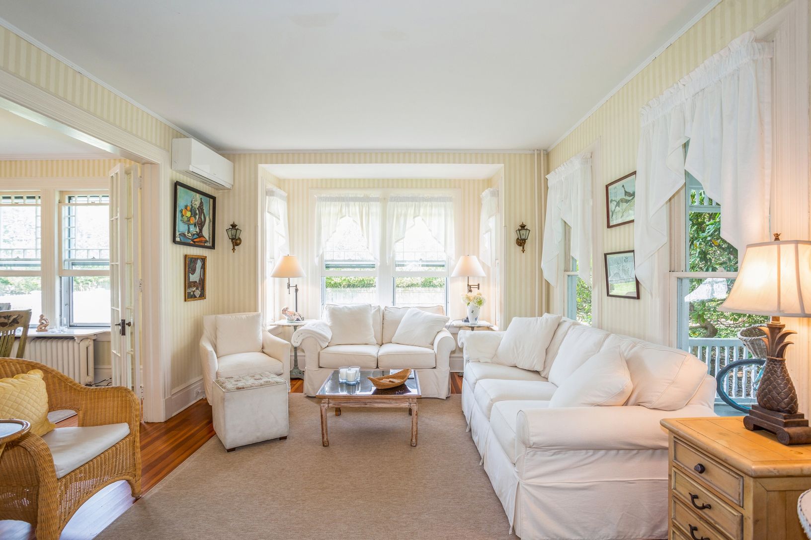 Summer in a Southampton Classic! Nothing better than having a change of surroundings and enjoy the relaxing effect that a mint historical home has to offer. This well-located village home has a fun front porch, welcoming center foyer, beautiful French doors on living room making it a quite spot for conversations. The formal dining room is next to a sunporch with wicker furniture. Full kitchen with laundry nearby and powder room close to the p