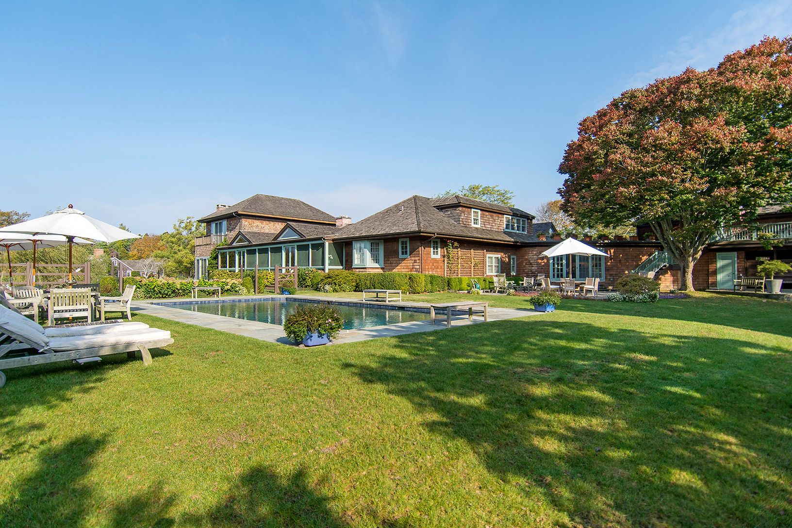 Stunning home in the estate section of Southampton Village located on Taylor Creek. The 7,500 +/- square foot floor plan is open and bright with five bedrooms, six full and three half bathrooms, two master suites both with spectacular views of the bay, library, chef's kitchen, equipped with 3 refrigerators and 4 dishwashers, cheerful breakfast area, dining room, large living room, family room with bay views and a separate suite over the garage