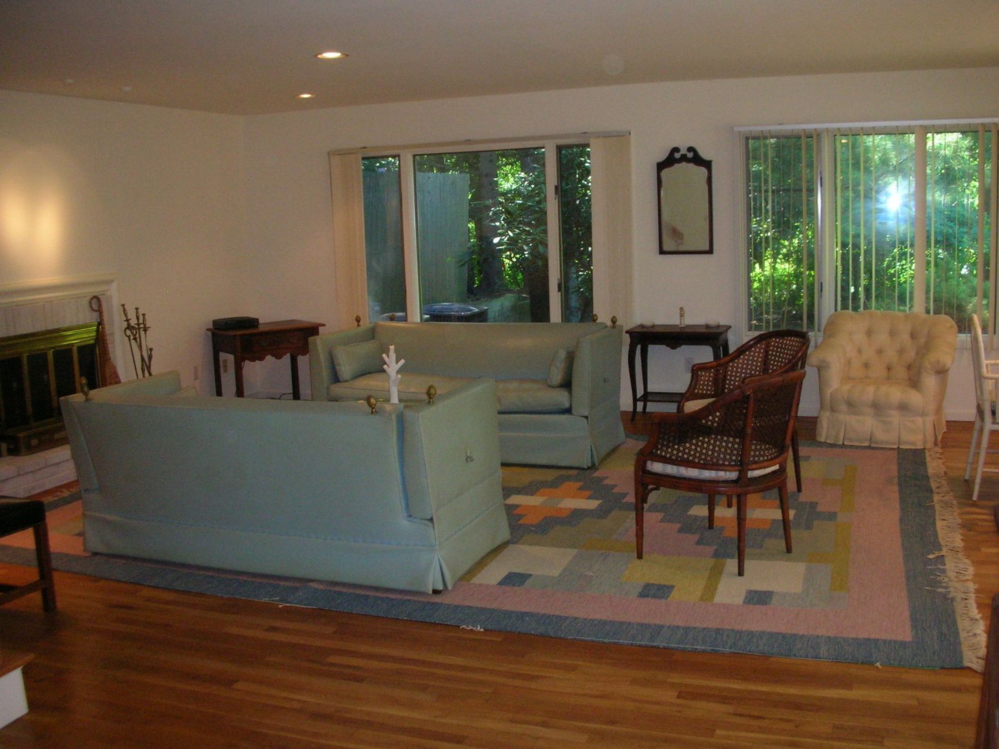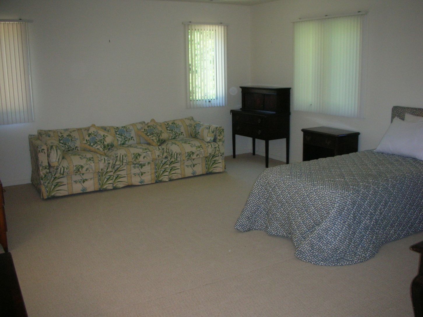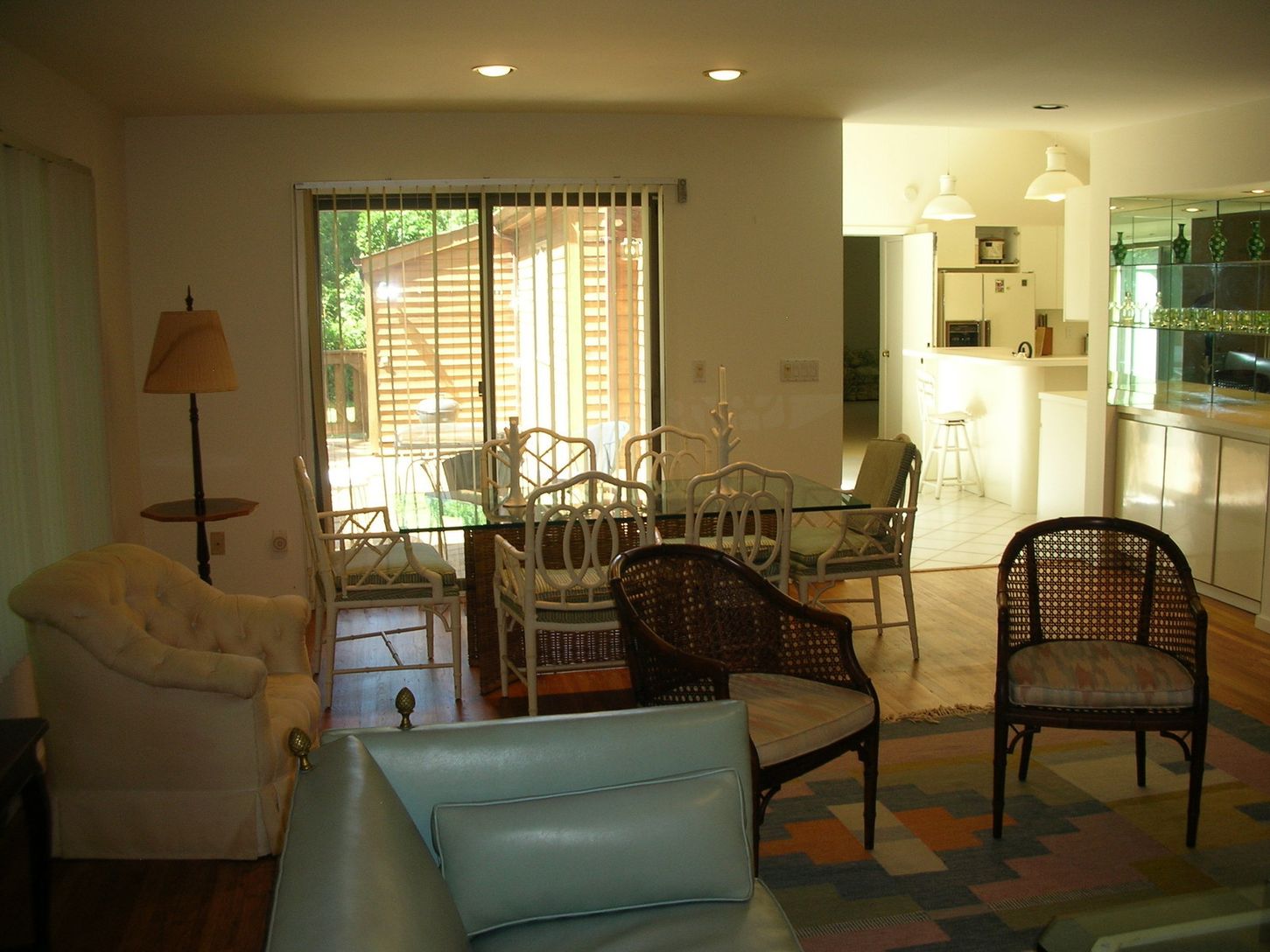 This four-bedroom, four-bath Contemporary house is located on a quiet cul-de-sac close to a beautiful pond and golf course, and a five minute drive from Southampton Village. On the first floor is a large living room, master suite, a bedroom/den with couch, chairs and TV, full bath, and kitchen with sliding doors that open onto patio and pool. The second floor has two master suites.