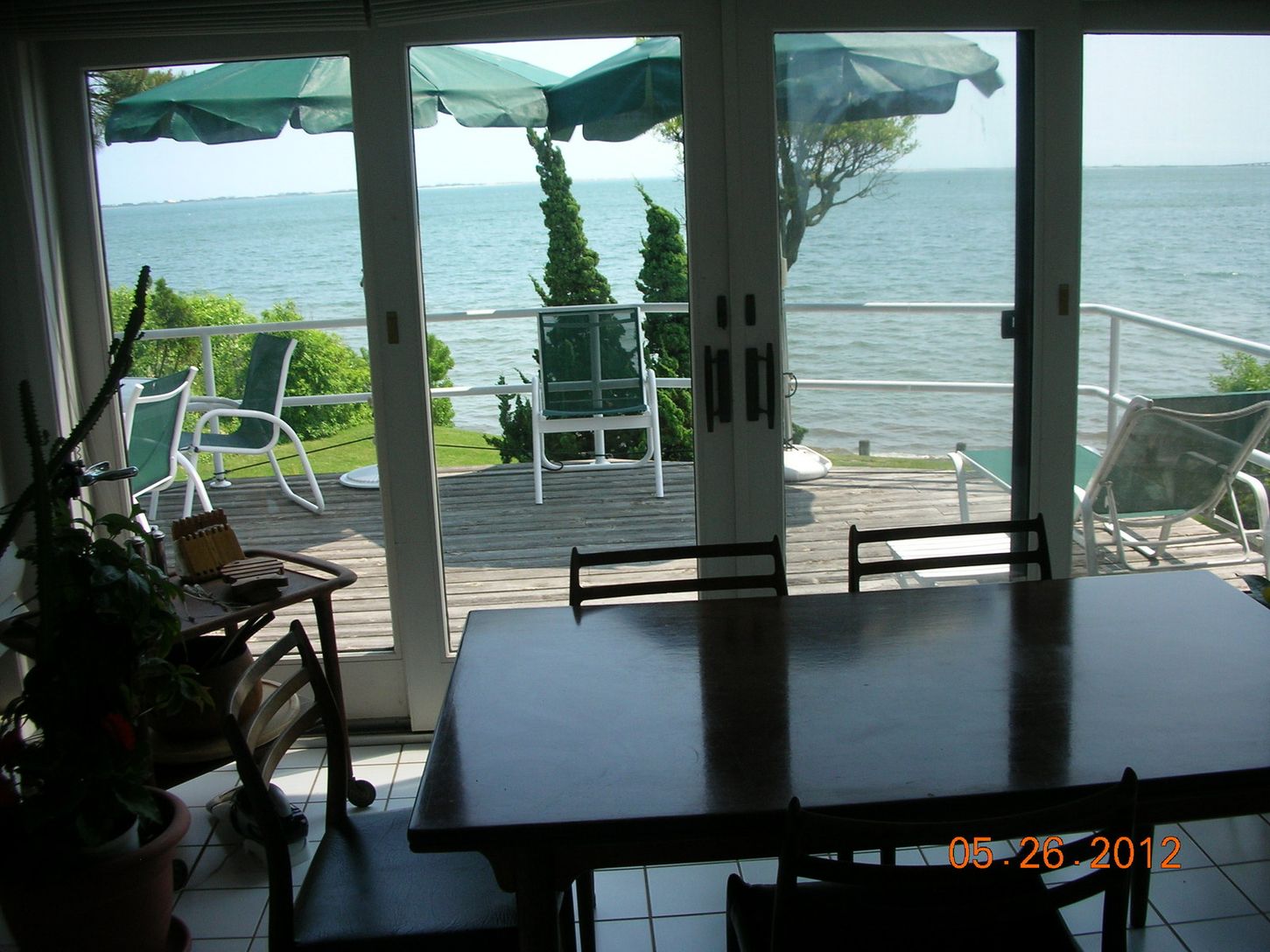 This six-bedroom, five-baths Traditional house is located on the cliff of Shinnecock Bay with a magnificent panoramic water view of the bay and the ocean. The view from the living room, dining room and the outdoor deck with the gunite heated pool located on the water side makes you feel like you are on a boat. The house is over 3,500 +/- square foot with CAC and a 100 feet bulkhead with a boat access to the water and an option to rent the owne