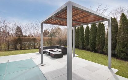 Brand new construction in Southampton Village with modern and cutting edge interior. The kitchen is equipped with custom gourmet stainless steel appliances and a giant center island. The living room boasts amazing natural lighting with vaulted ceiling, fireplace and glass walls that overlook and beautifully landscaped pool area. An outdoor grill is built into the blue stoned patio. The yard has a gas fed fire pit and surrounding ground lightin